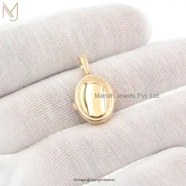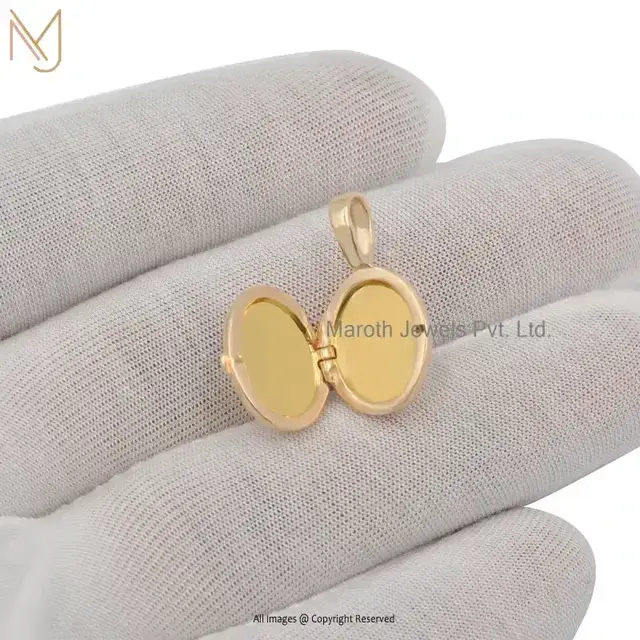 14K Yellow Gold Cubic Zircon Oval Locket Pendant Manufacturer