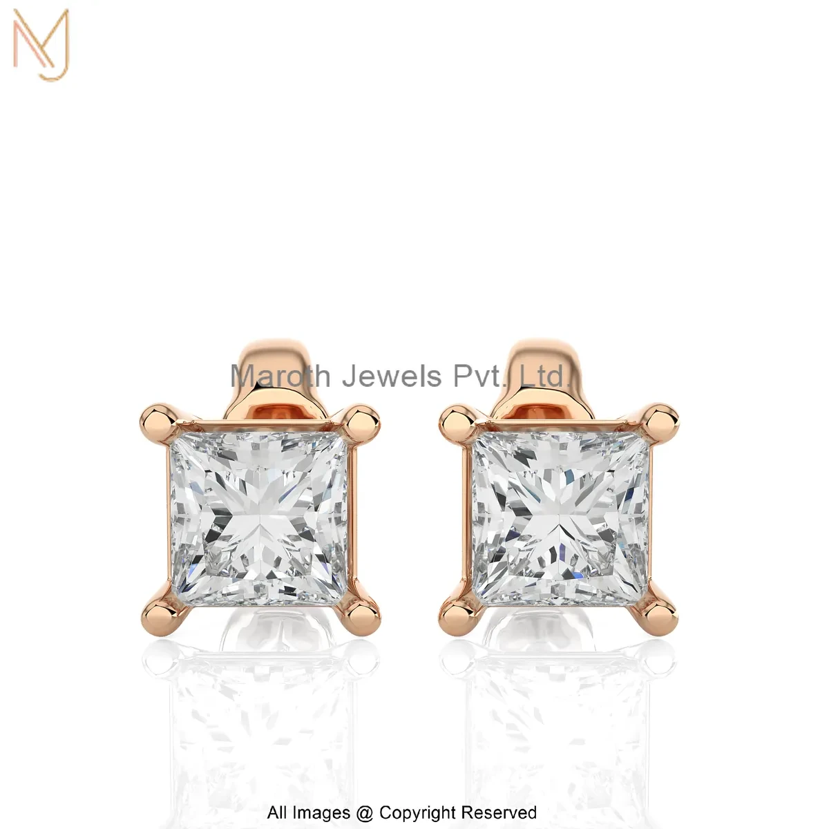 14K Yellow Gold Cubic Zircon Princess-Cut Diamond Stud Earring Manufacturer
