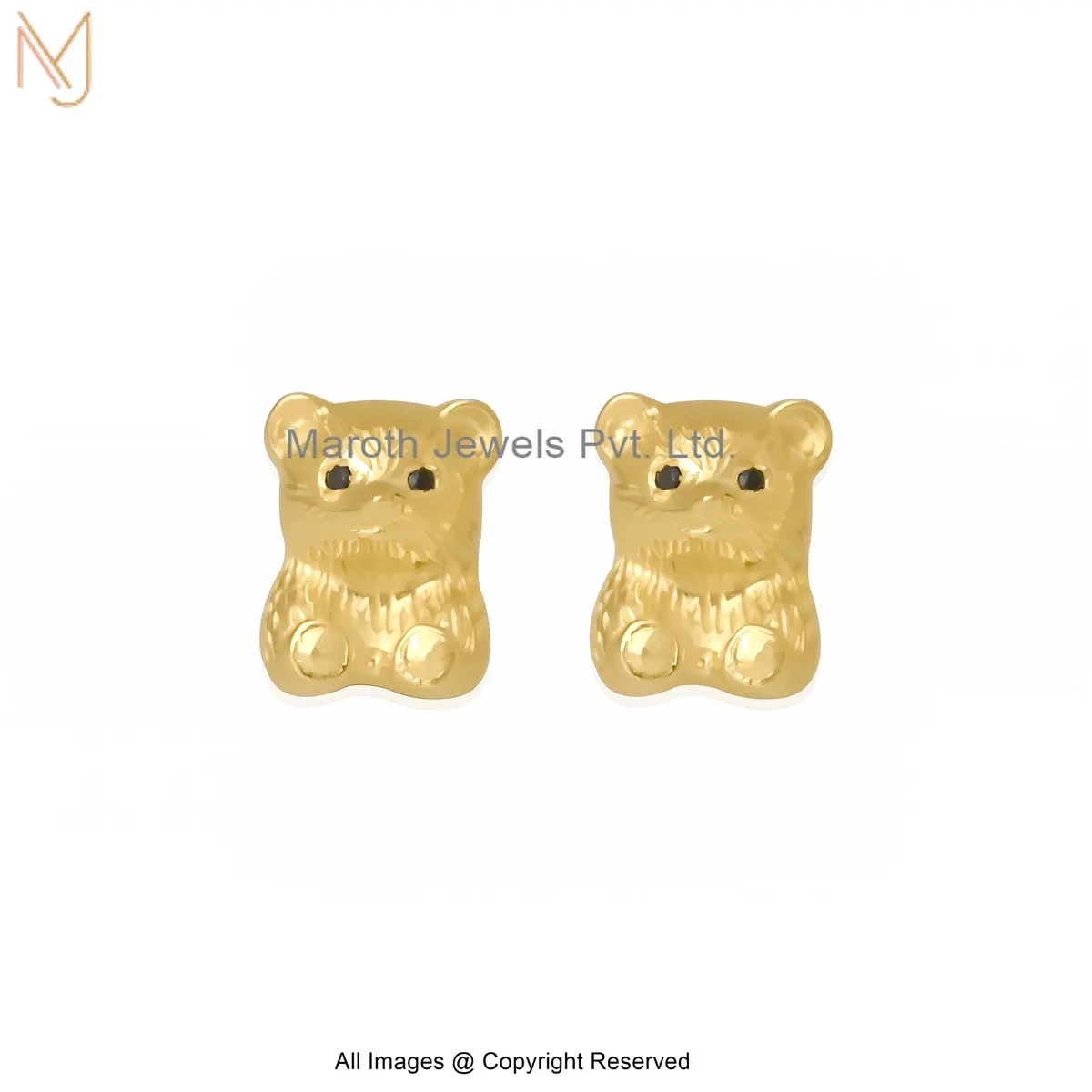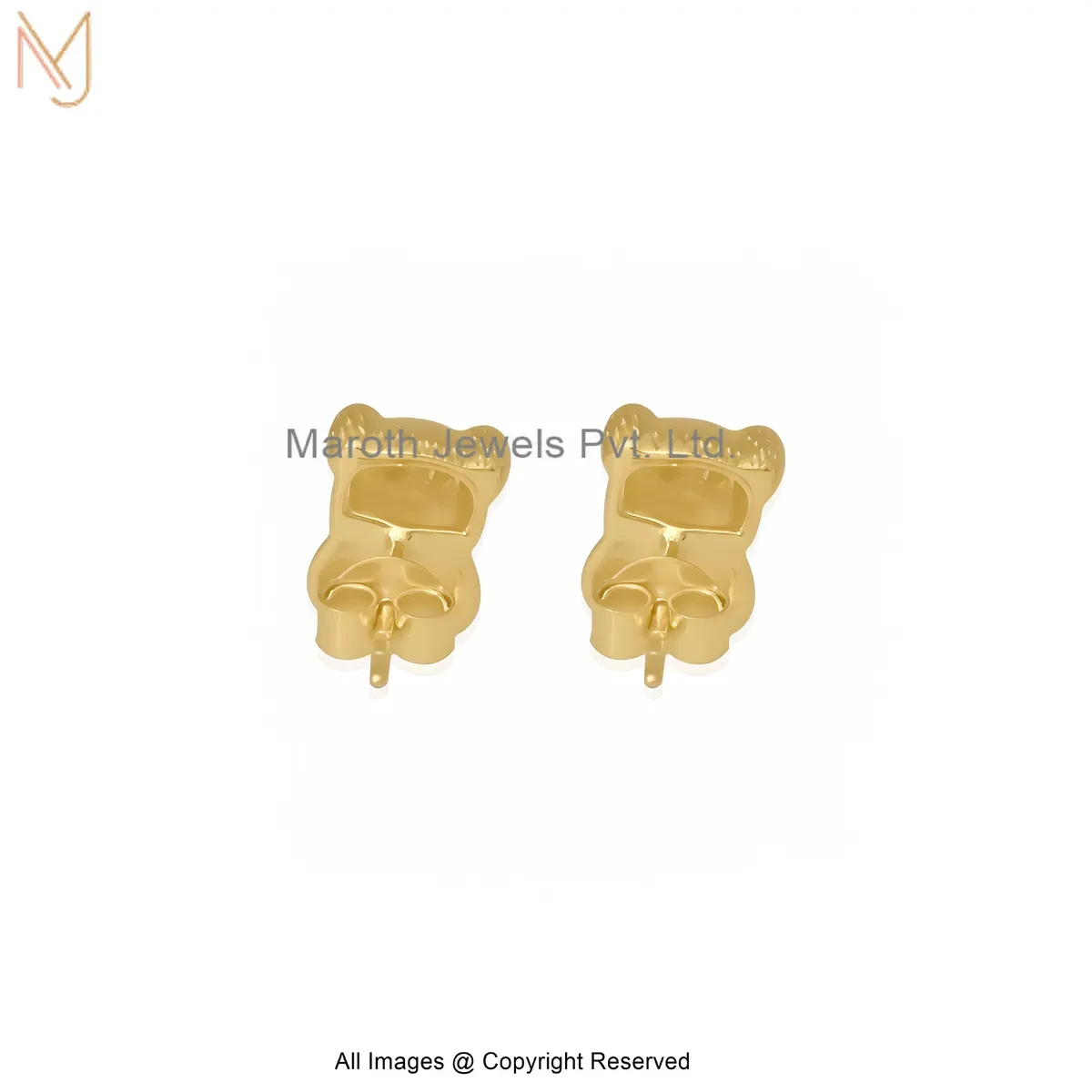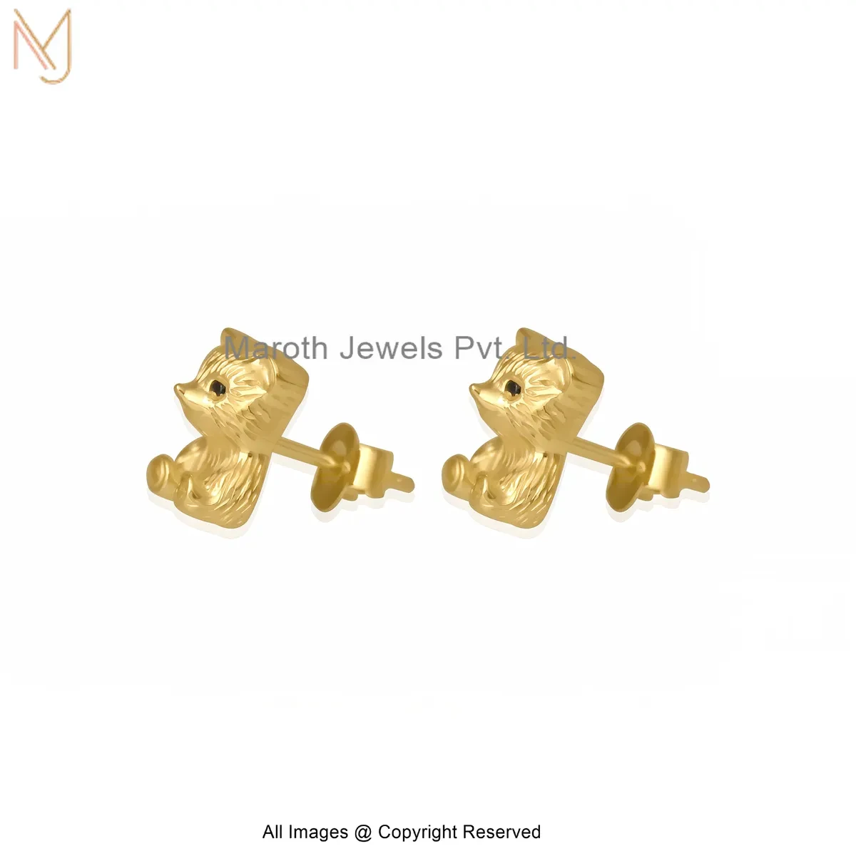 14K Yellow Gold Cute Bear Shape Gold Stud Earrings Manufacturer