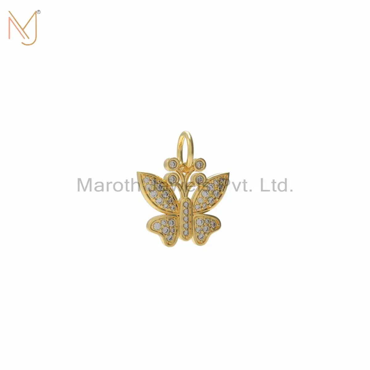 14K Yellow Gold Diamond Butterfly Pendant Custom Jewelry