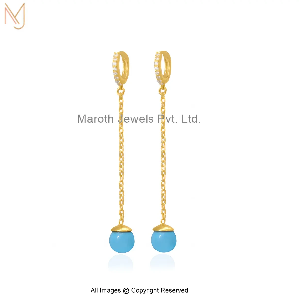 14K Yellow Gold Diamond Cubic Zircon Minimal Turquoise Chain Drop Earring Jewelry Supplier