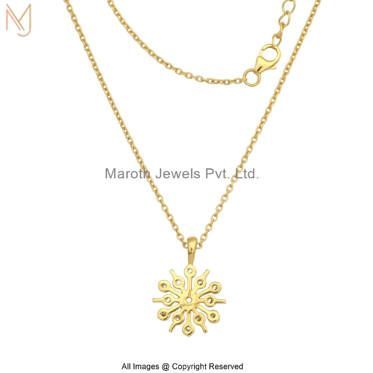 14K Yellow Gold Diamond Cubic Zircon Snowflake OR Flower-Shaped Design Necklace Manufacturer