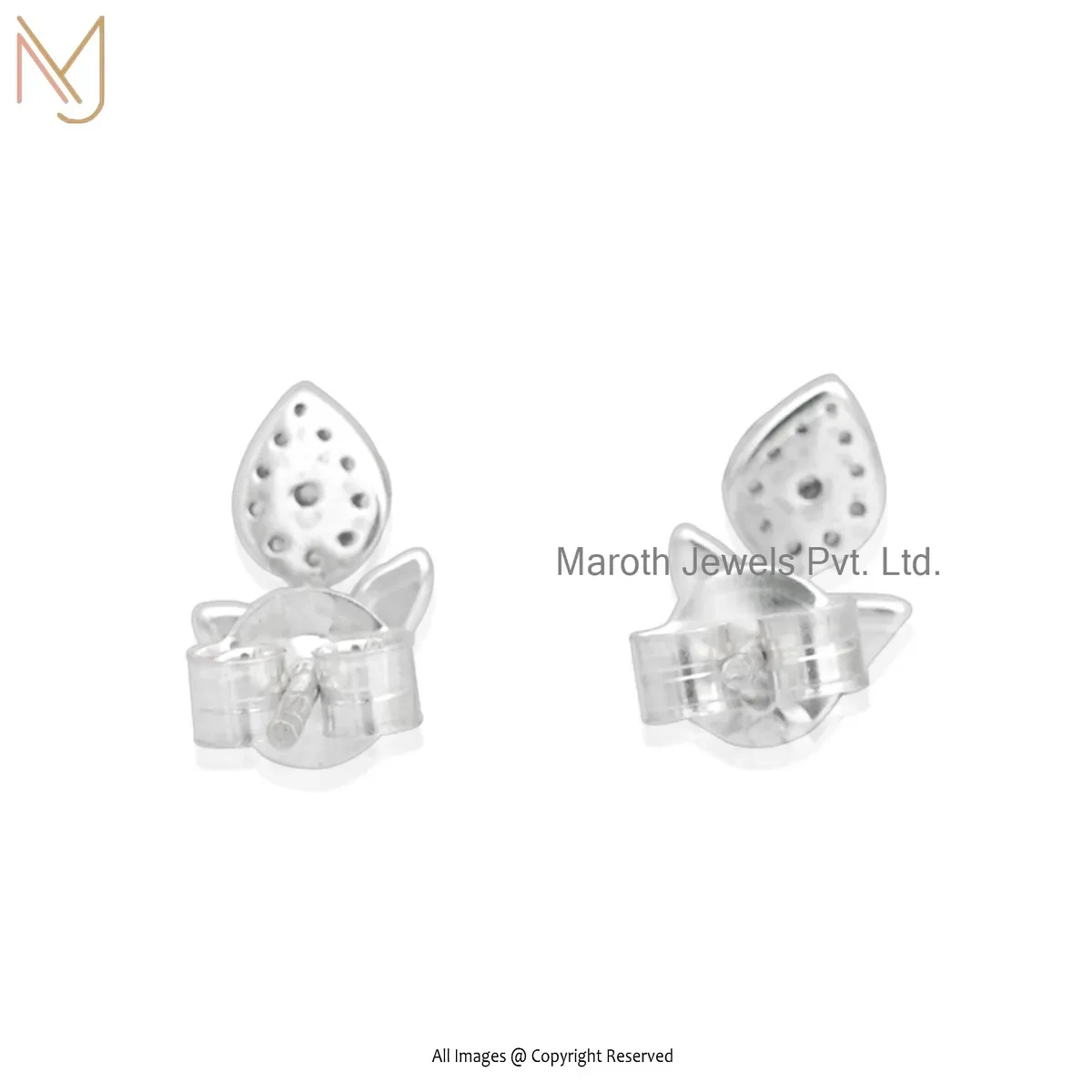 14K Yellow Gold Diamond Cubic Zircon White-Toned Floral Stud Earring Custom Jewelry