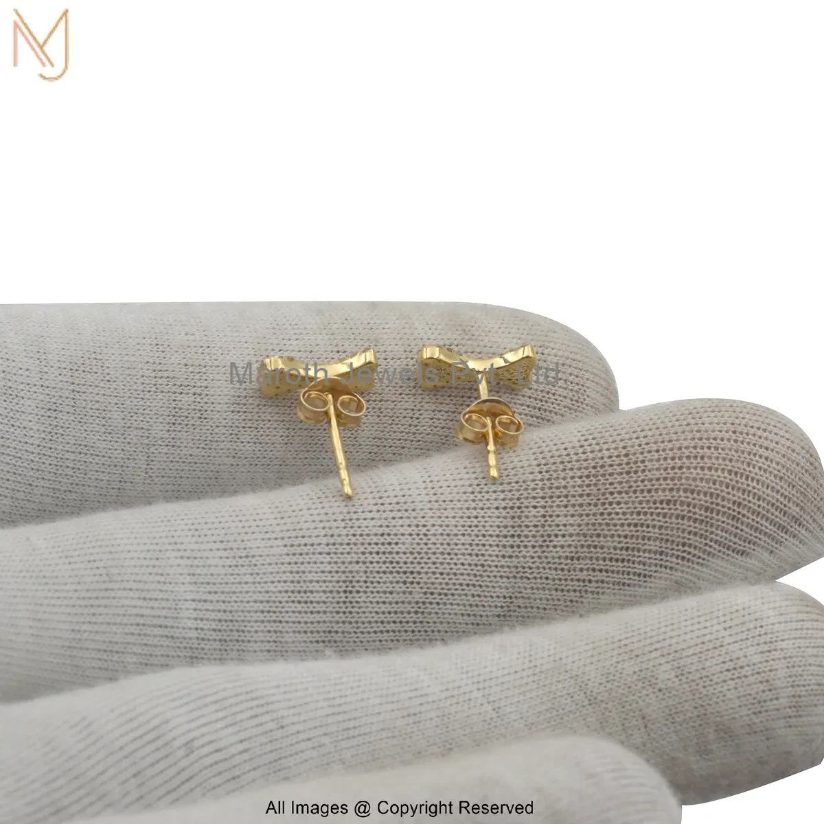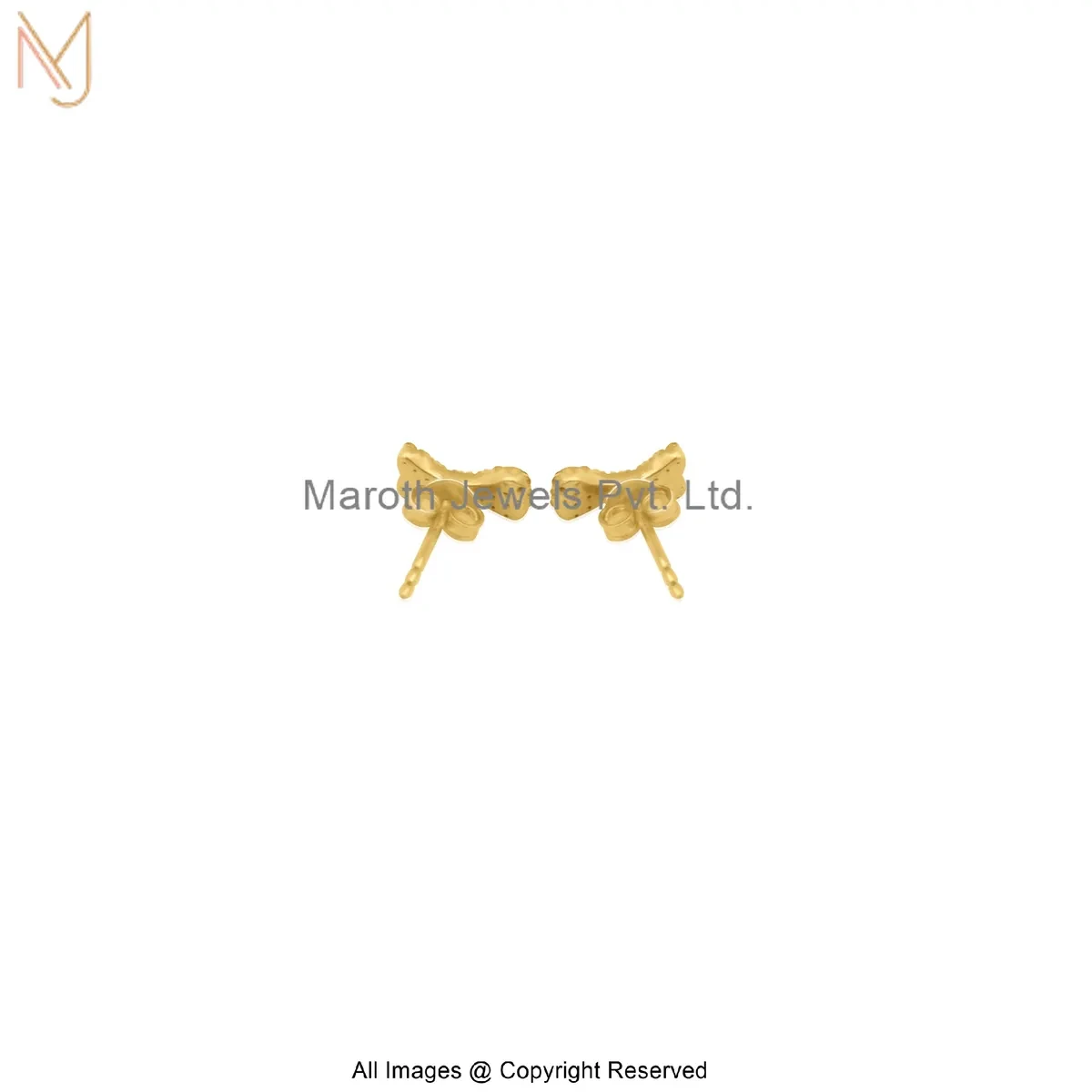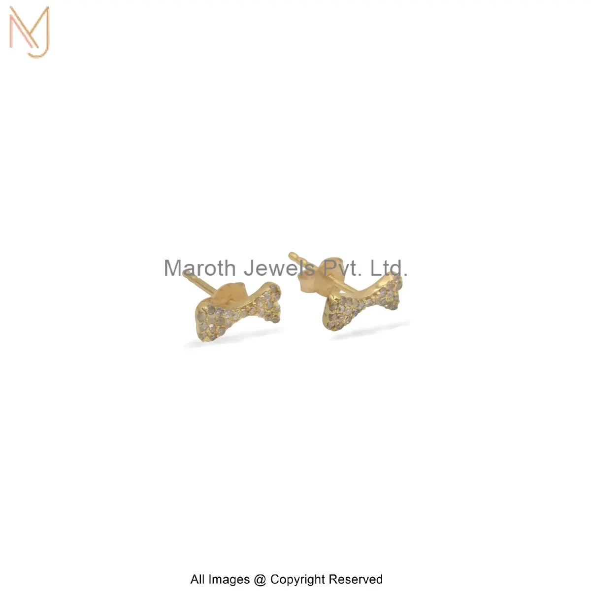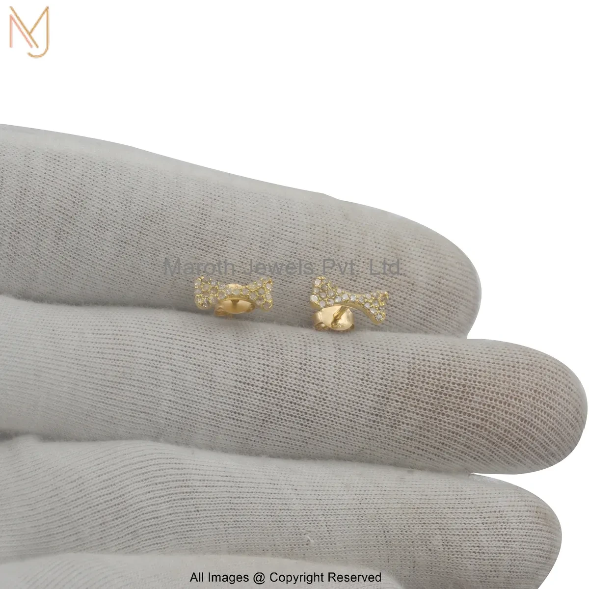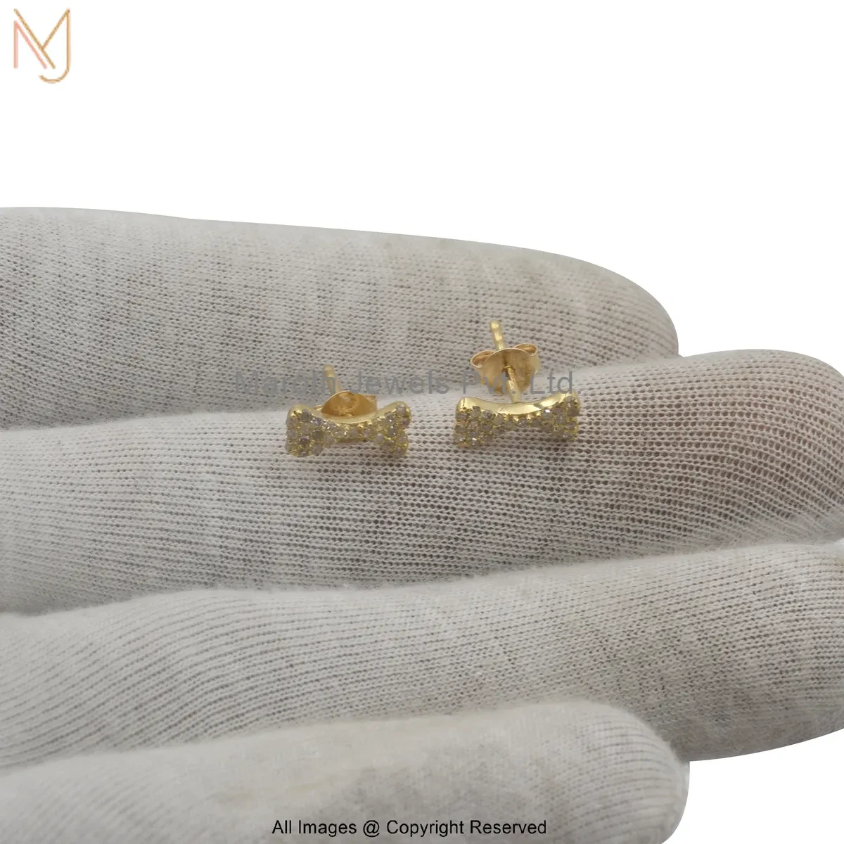 14K Yellow Gold Diamond Dog Bone Stud Earring Custom Jewelry