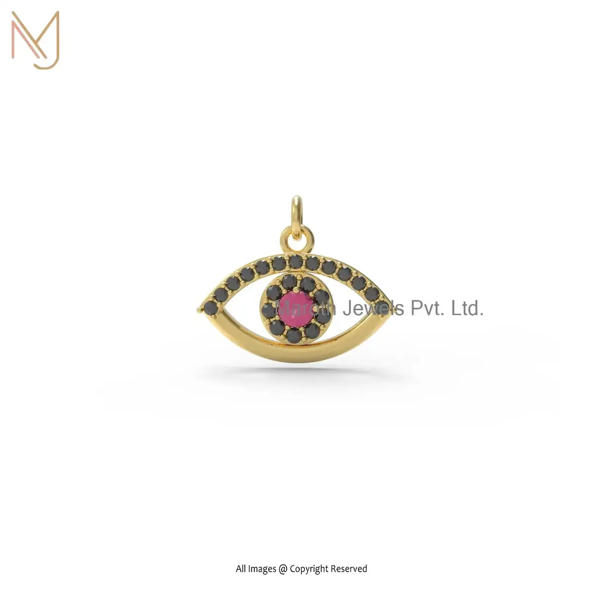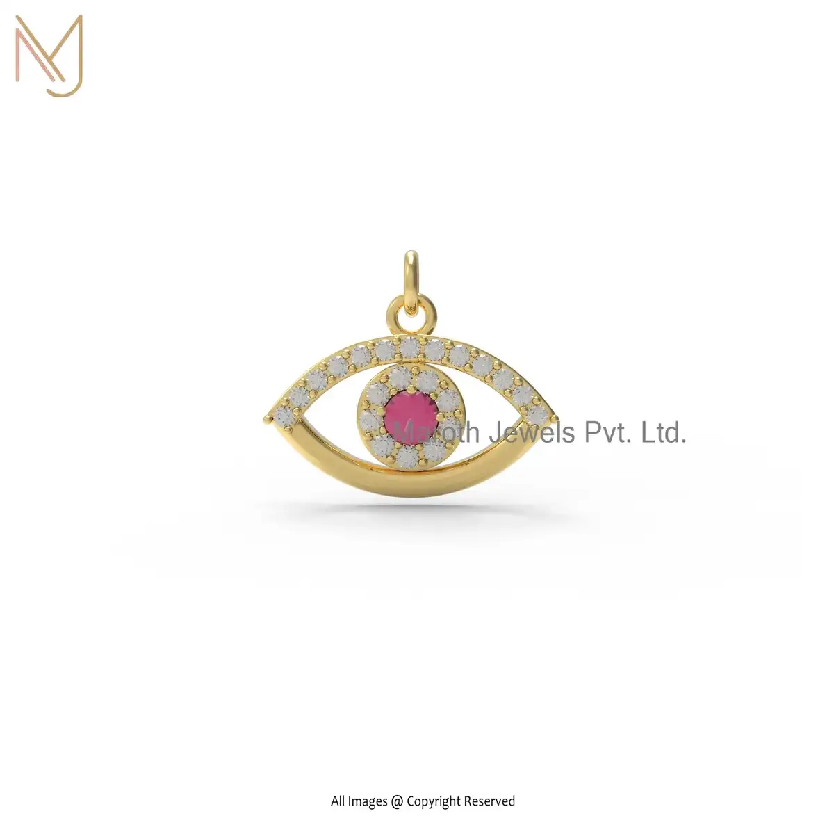14K Yellow Gold Diamond Evil Eye Pendant Jewelry Manufacturer