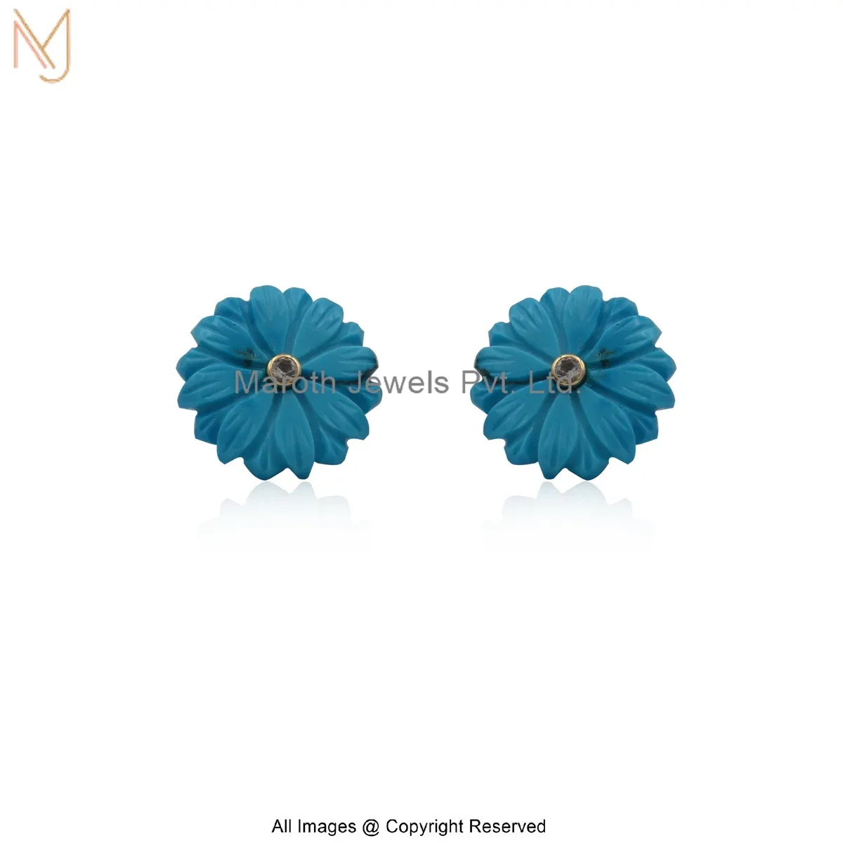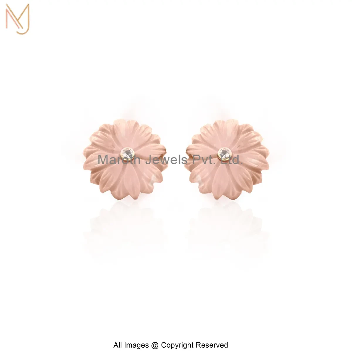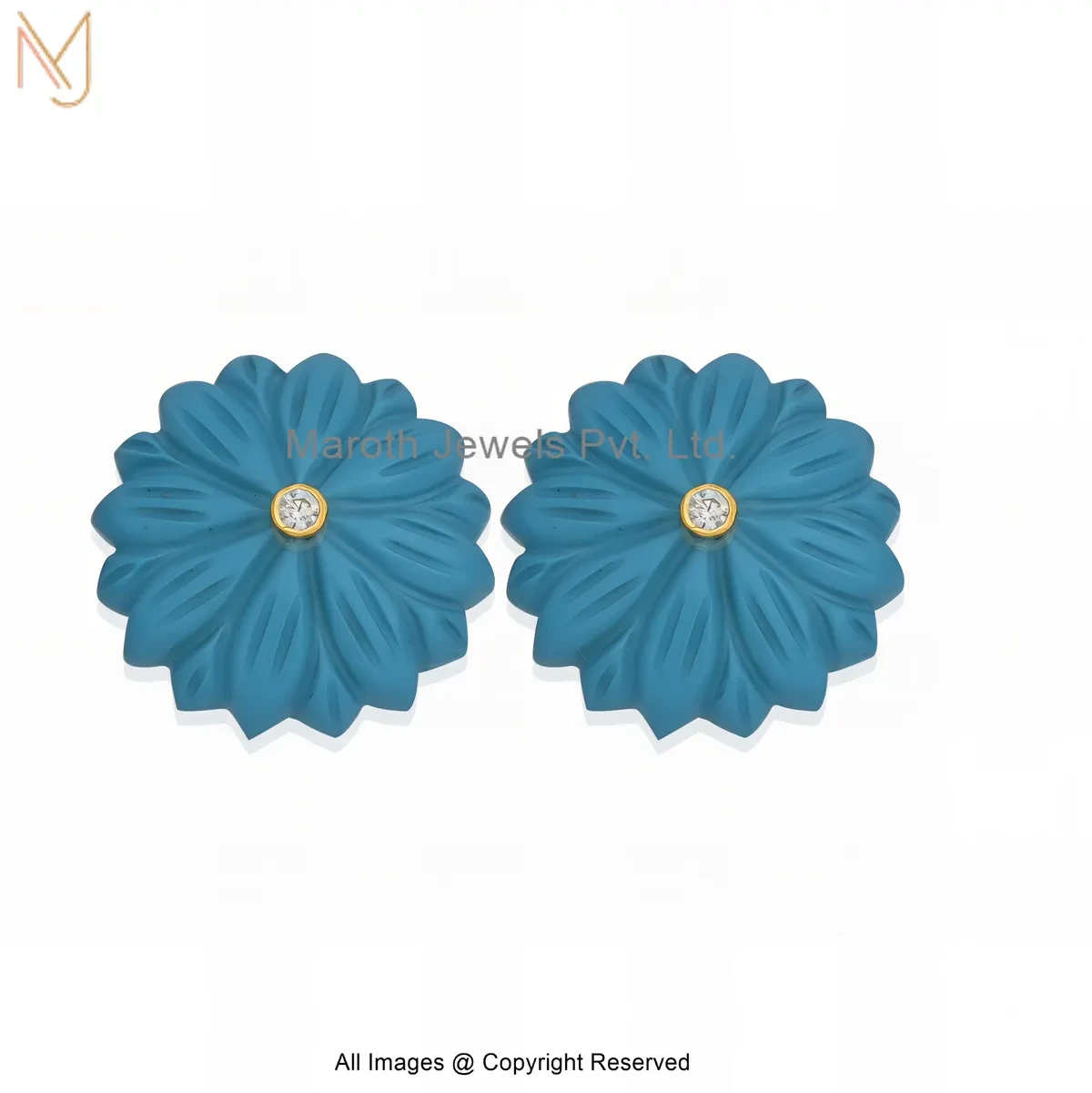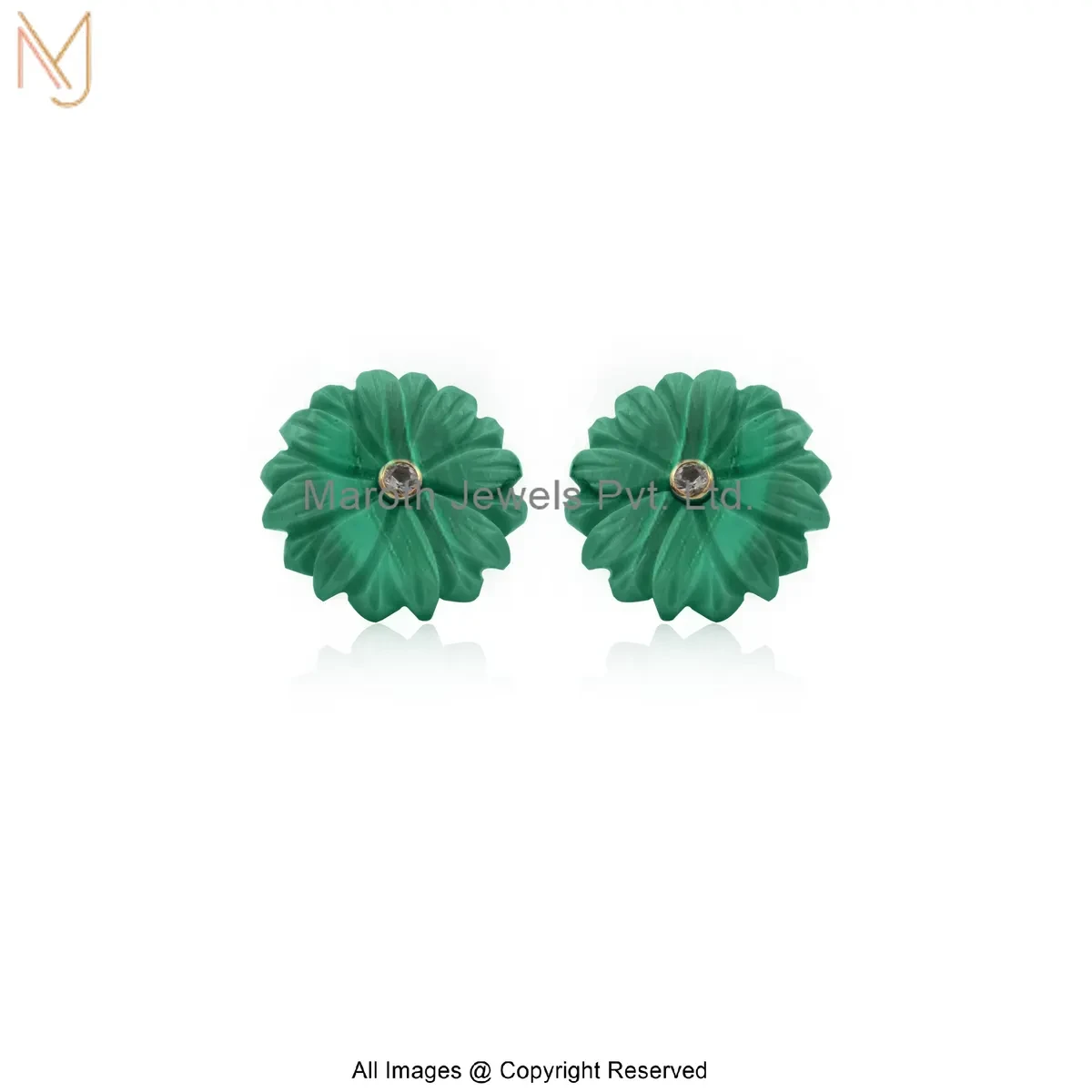 14K Yellow Gold Diamond Gemstone Flower Stud Earring Manufacturer