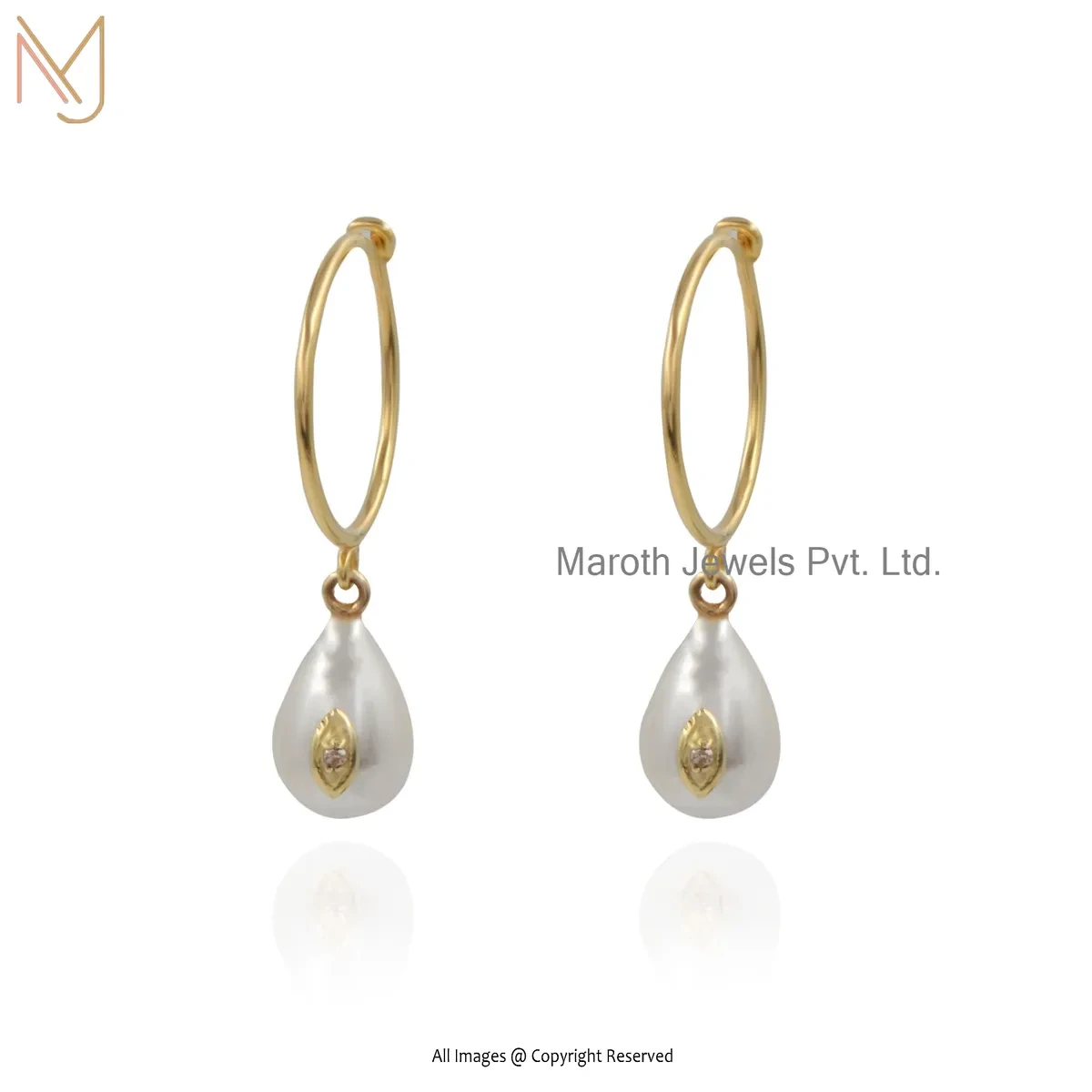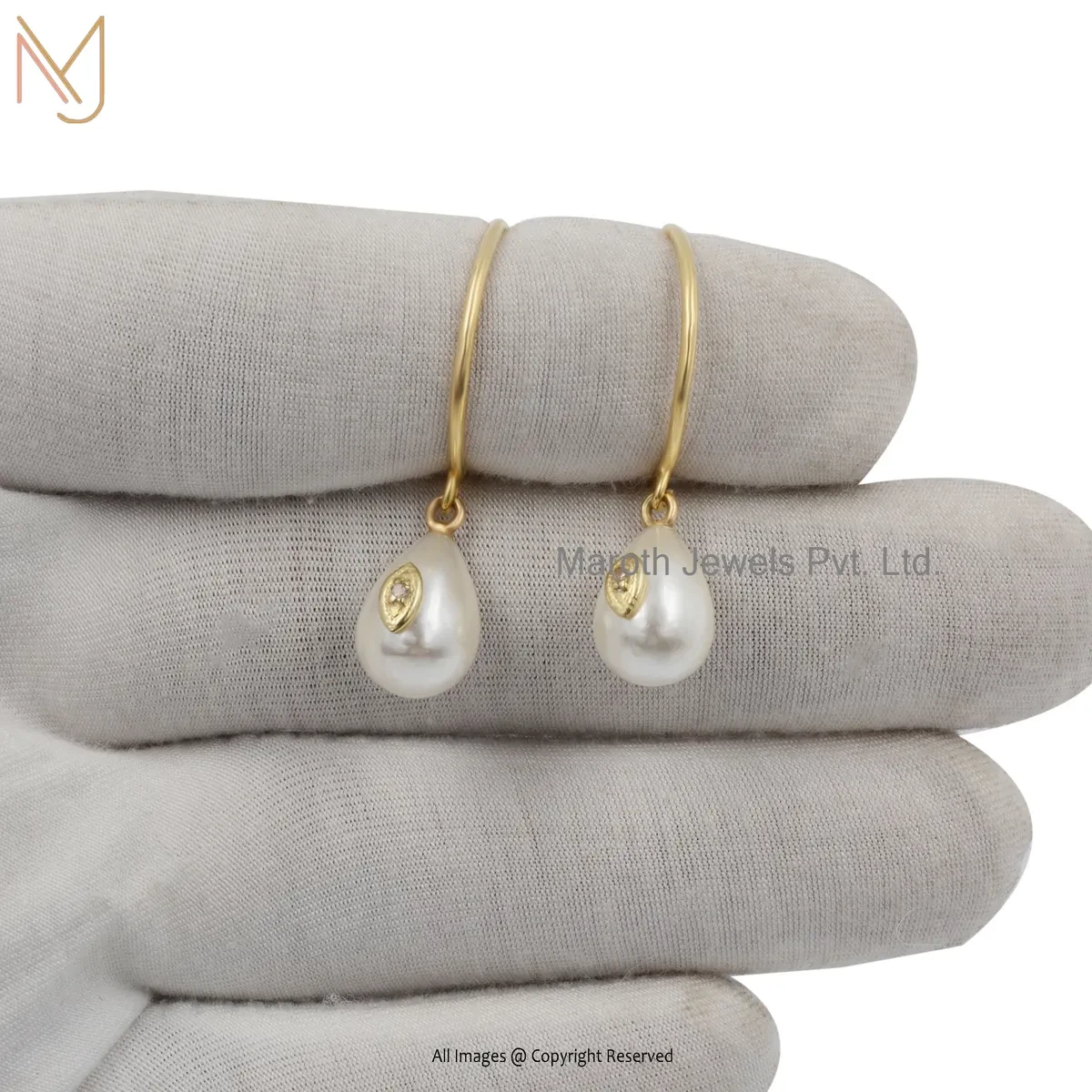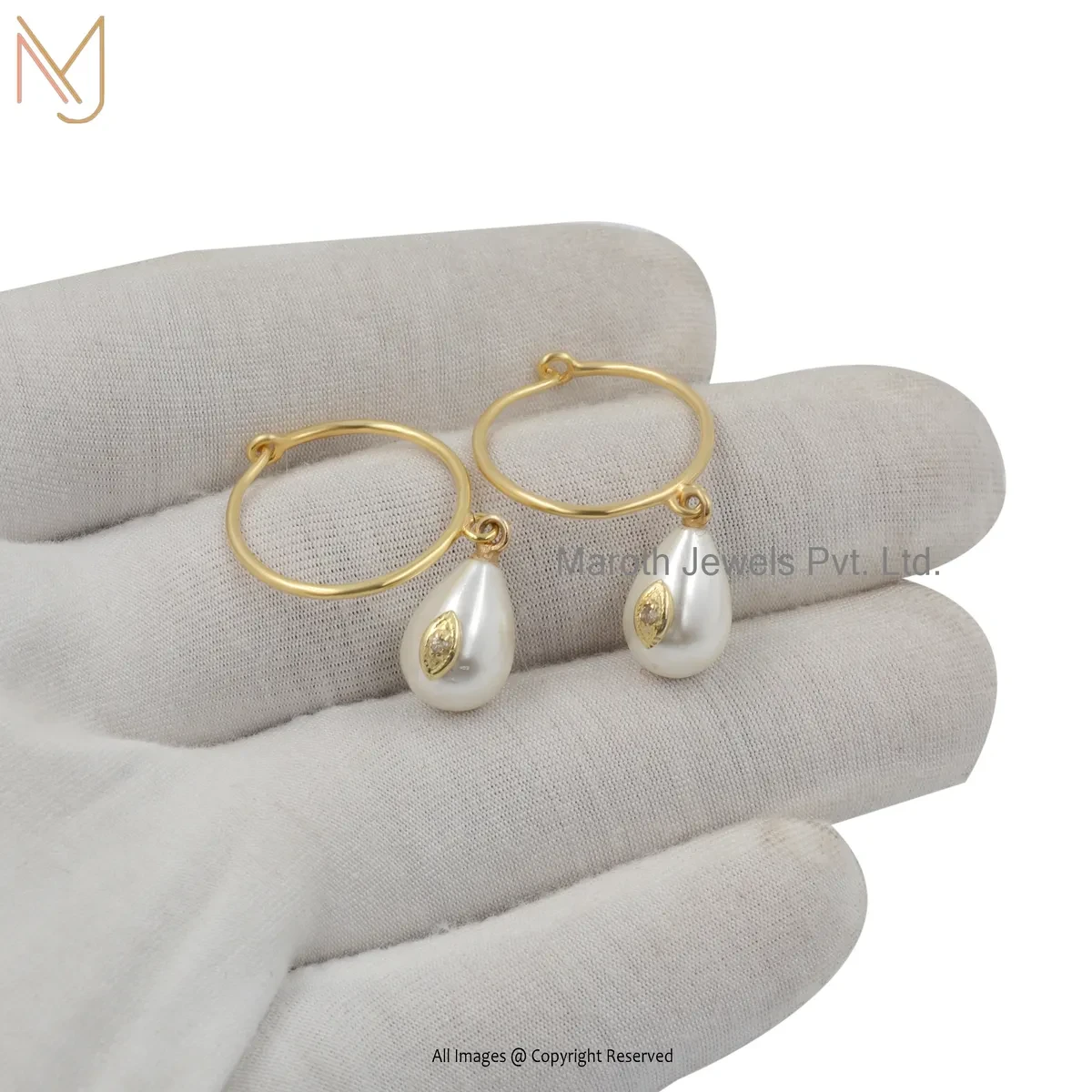14K Yellow Gold Diamond Pearl Hoop Earring Jewelry Supplier