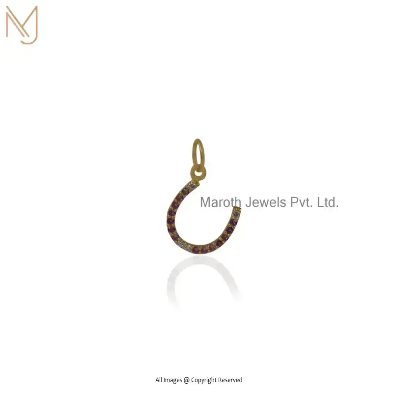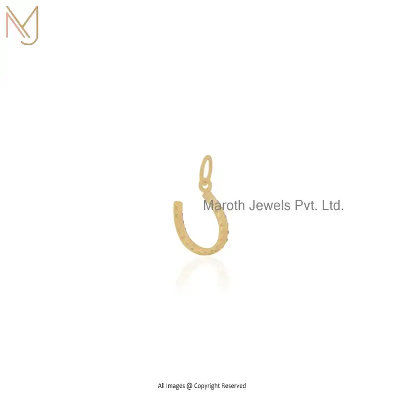 14K Yellow Gold Diamond Pink Sapphire Horseshoe Charm Pendant Manufacturer