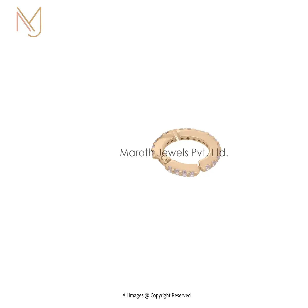 14K Yellow Gold Diamond Round Enhancer Lock Link Charm Holder Custom Jewelry