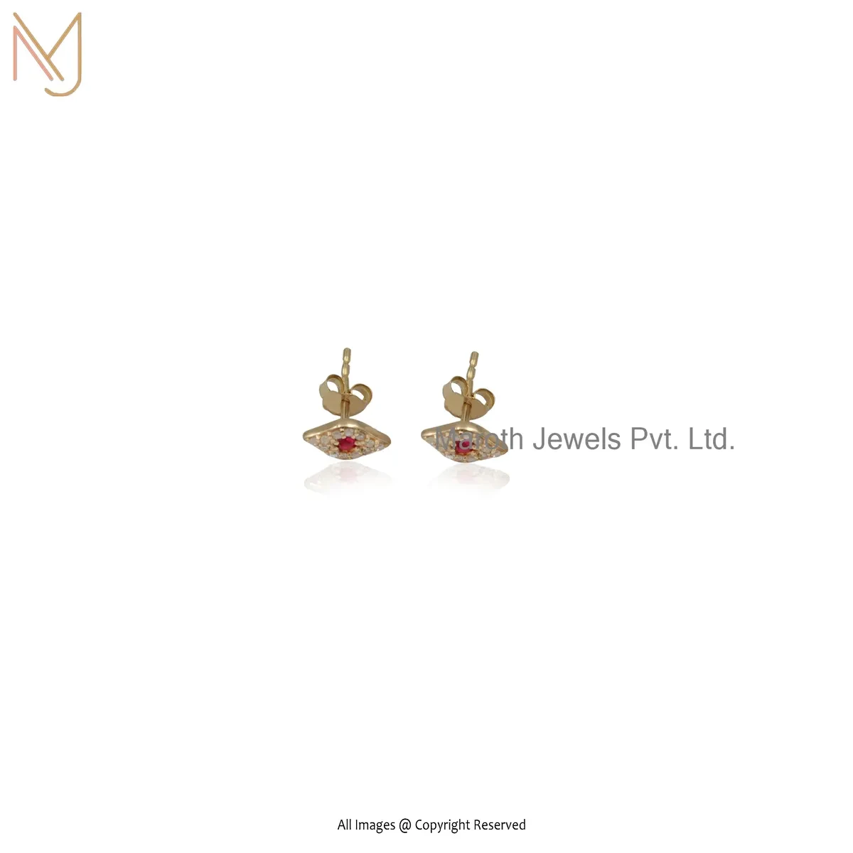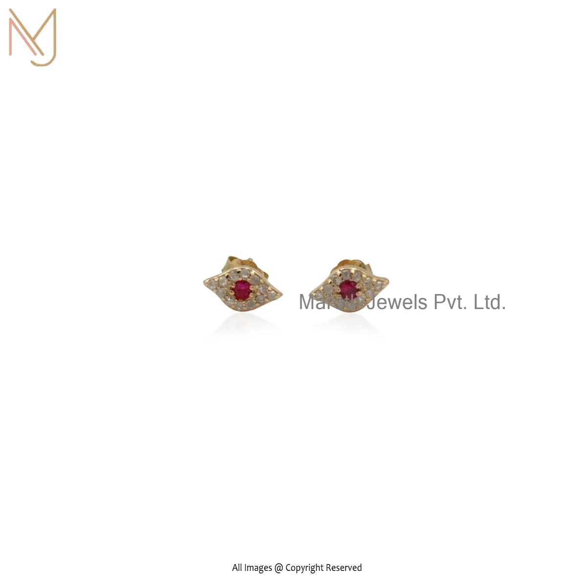 14K Yellow Gold Diamond Ruby Gemstone Evil Eye Stud Earring Jewelry Supplier