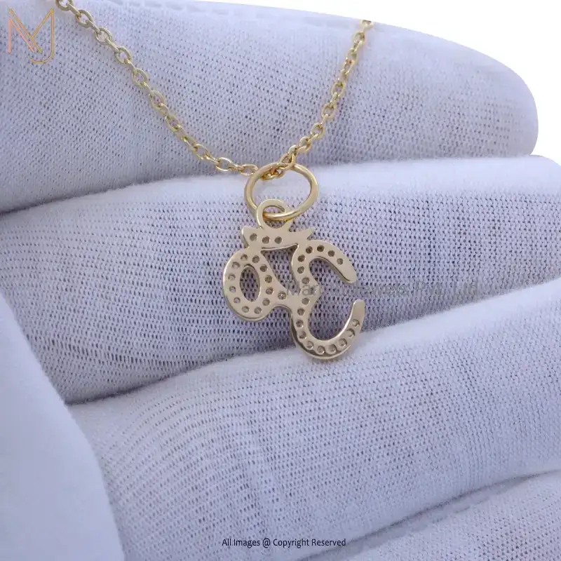 14K Yellow Gold Diamond Sacred OM Pendant Jewelry Manfcaturer