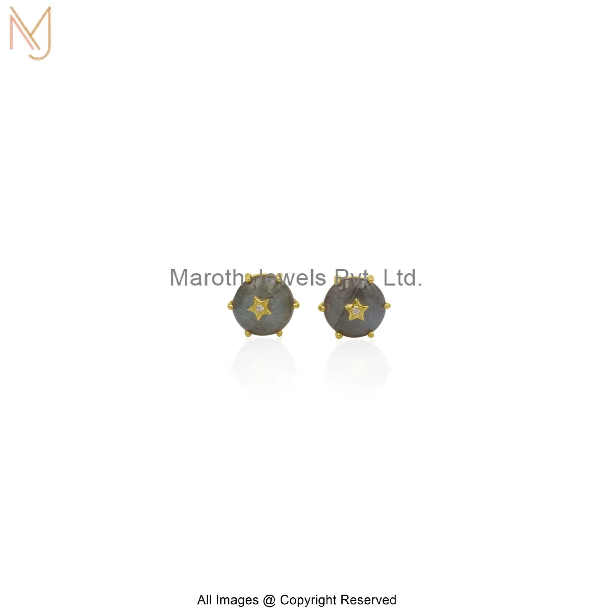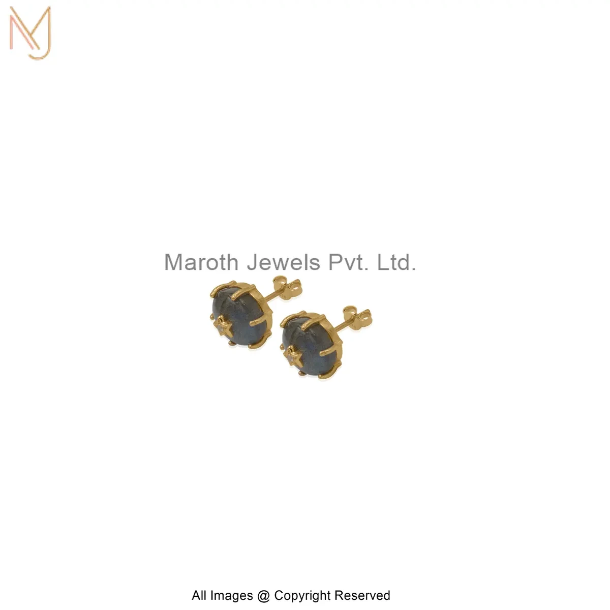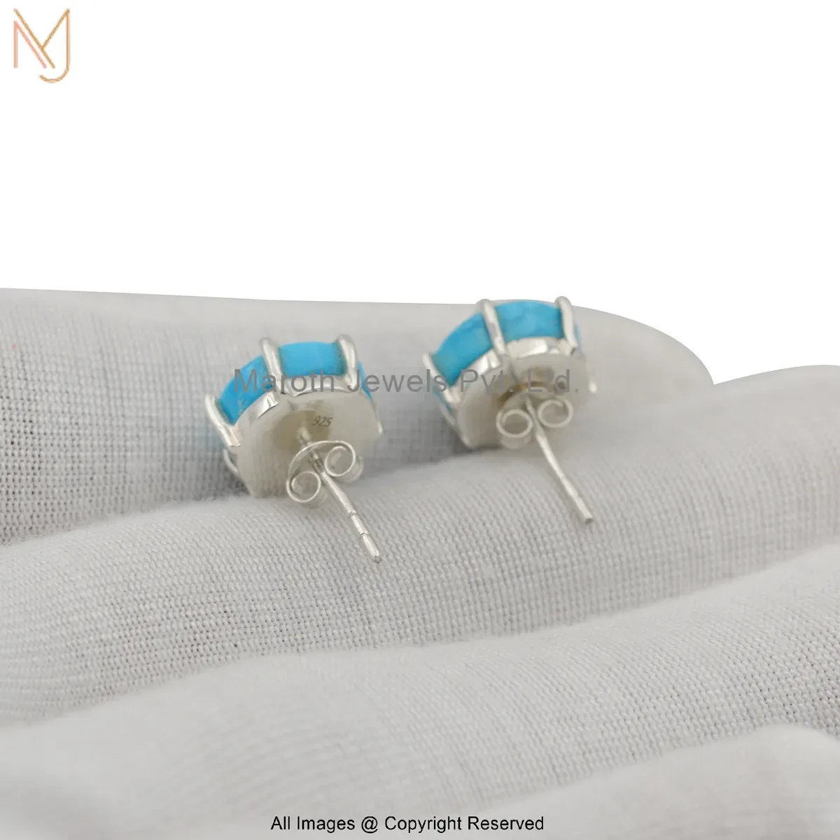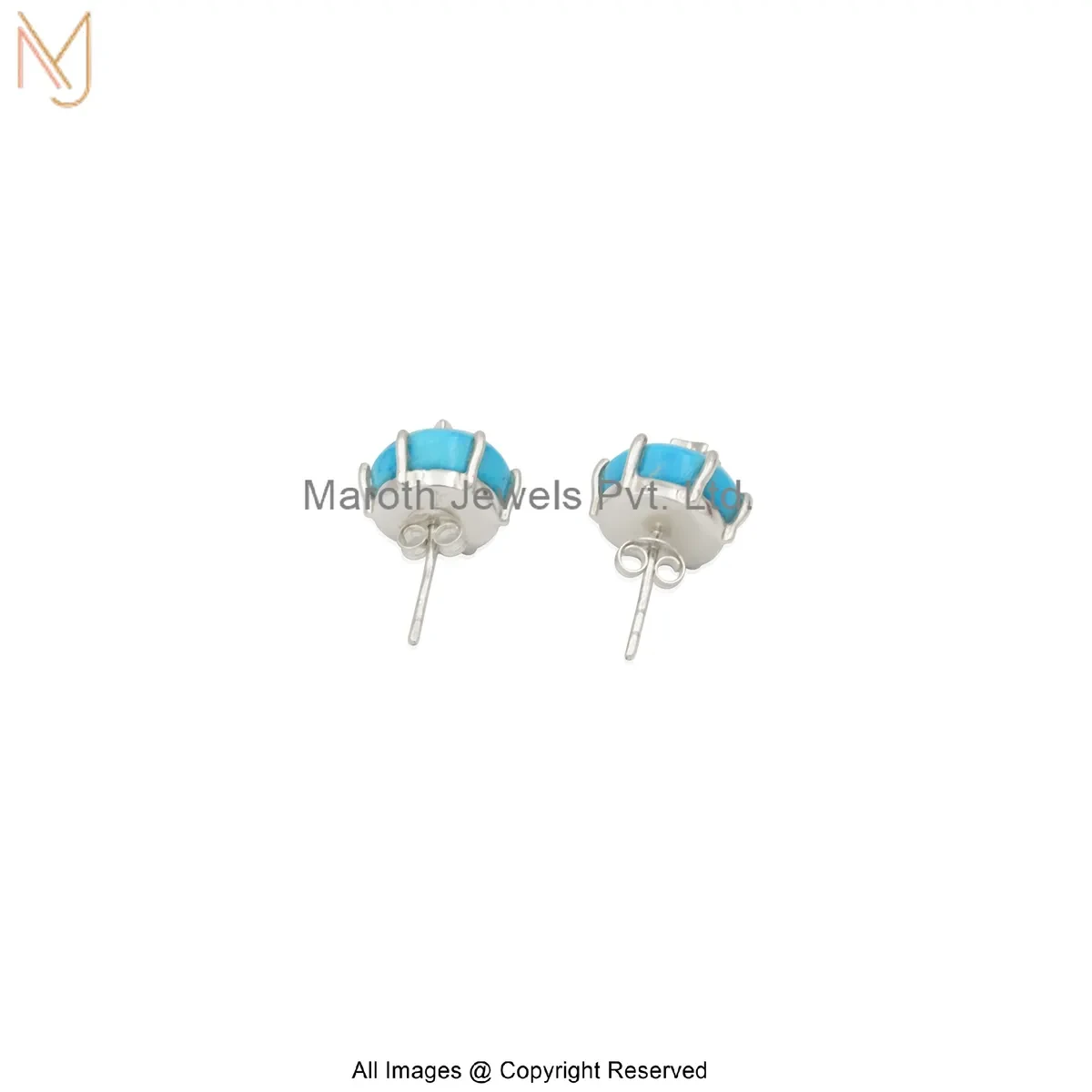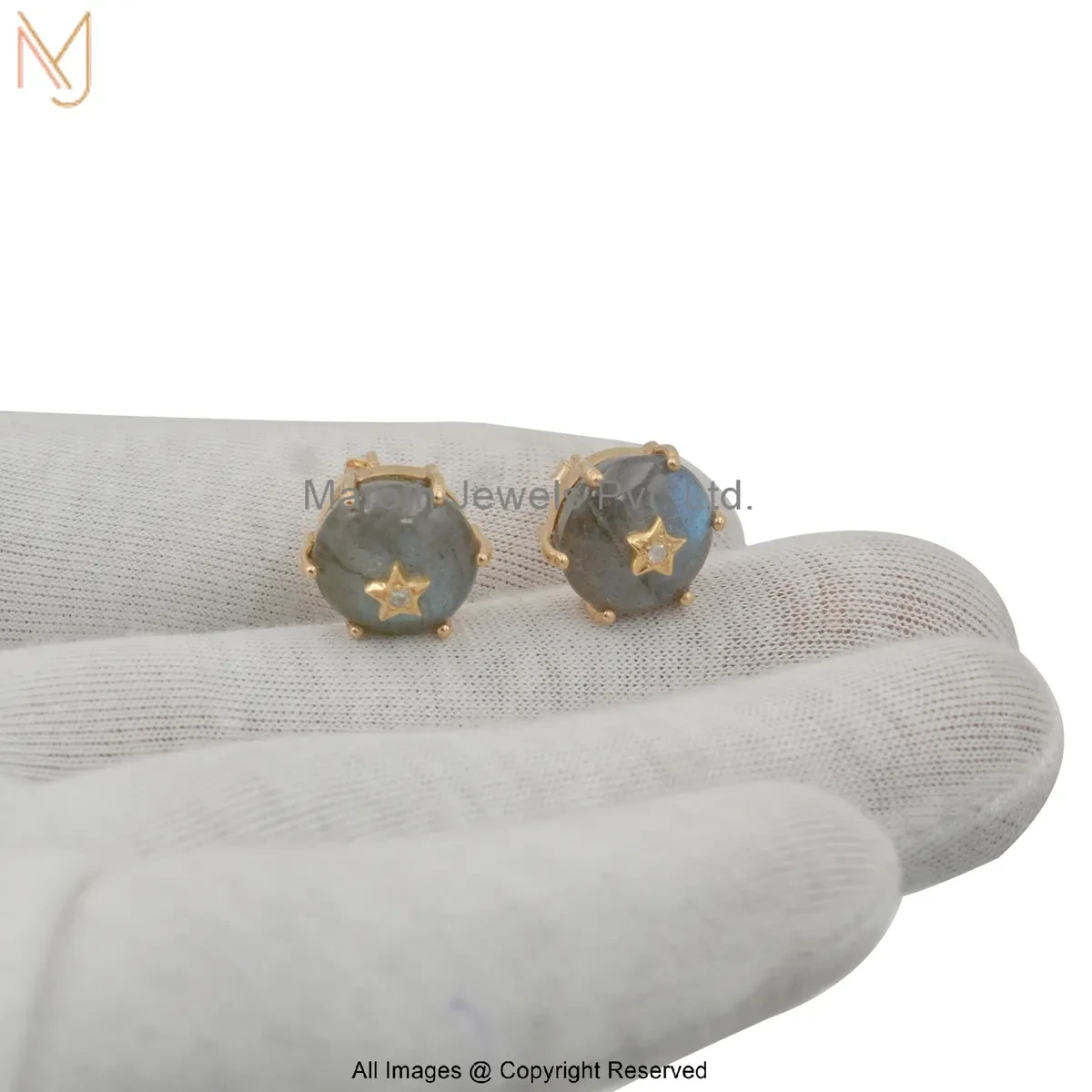 14K Yellow Gold Diamond Star Design Turquoise Stud Earring Custom Jewelry