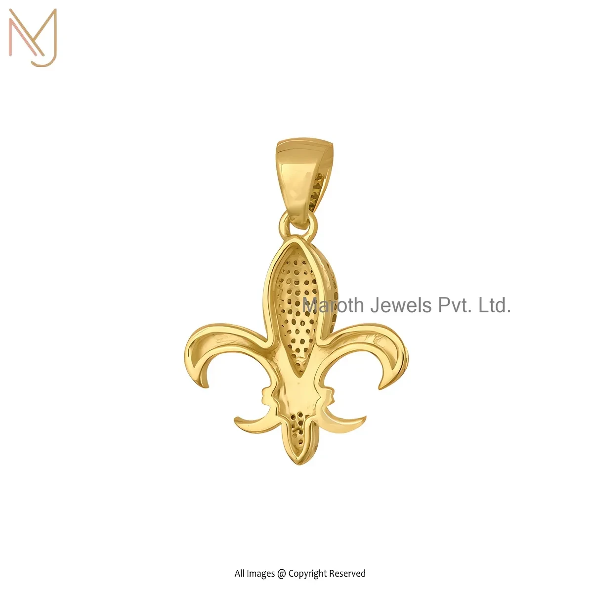 14K Yellow Gold Diamond Swarovski Crystal Fleur de lis Pendant Custom Jewelry