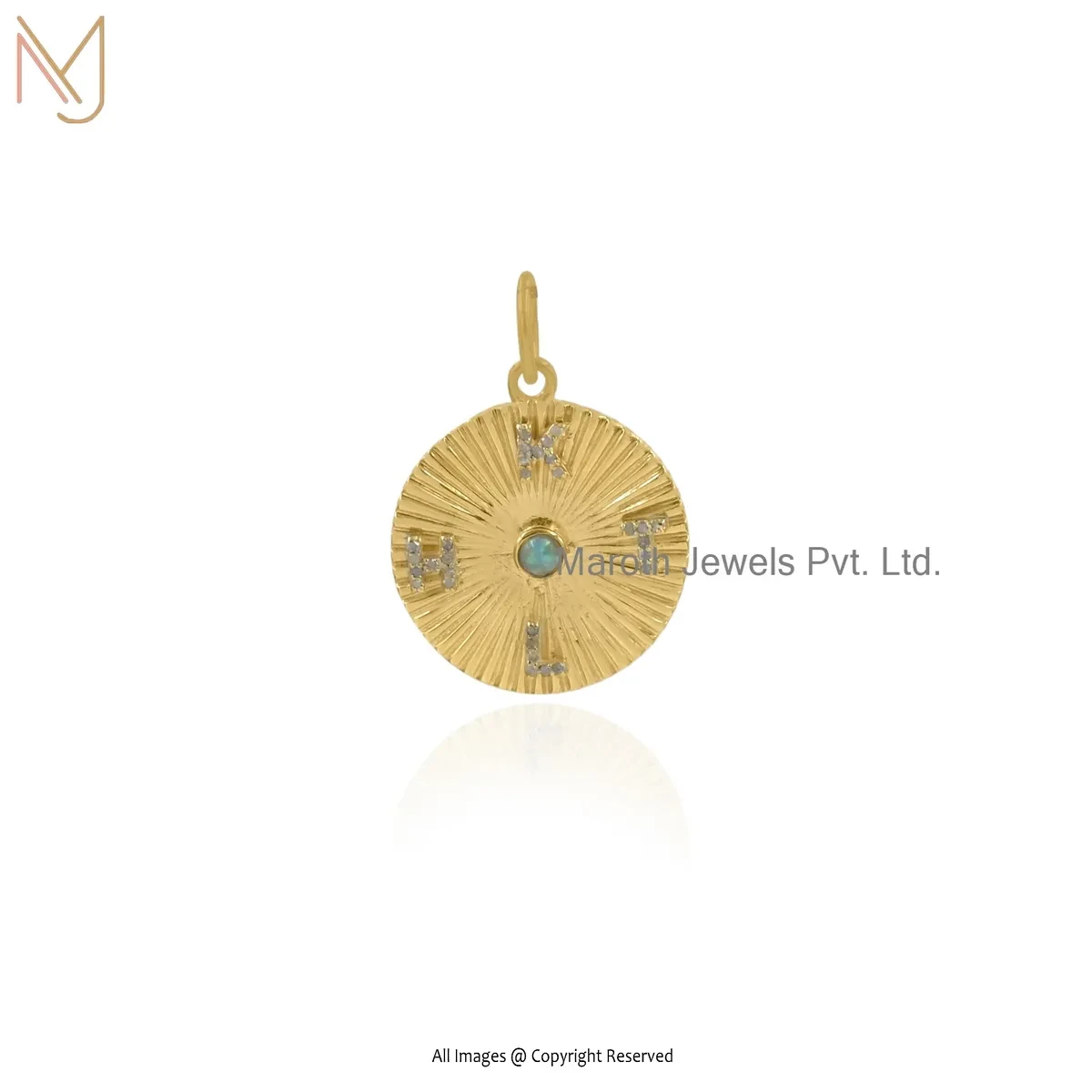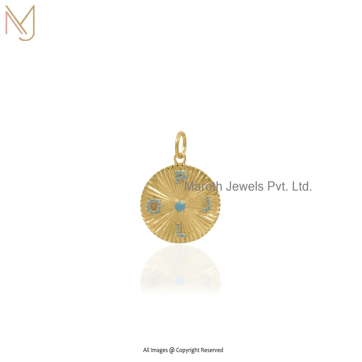 14K Yellow Gold Diamond Turquoise Letter Pendant Custom Jewelry