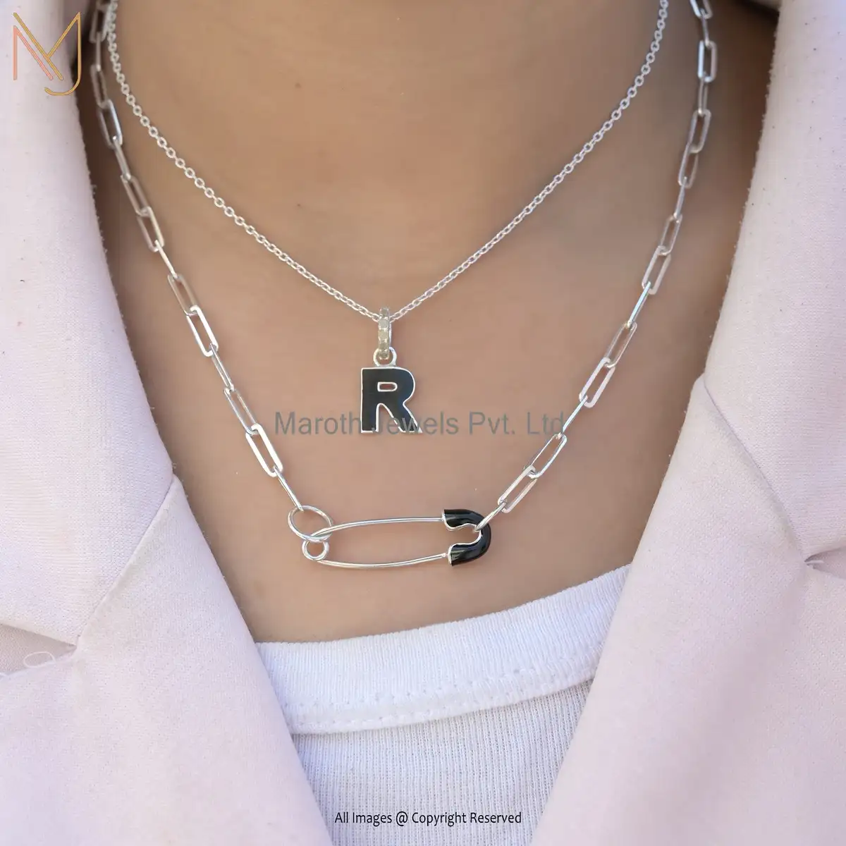 14K Yellow Gold Diamond White Enamel Letter Charms Jewelry USA