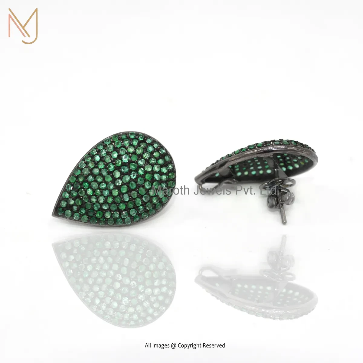 14K Yellow Gold Dimaond Tsavorite Pear Shape Minimal Stud Earring Manufcaturer
