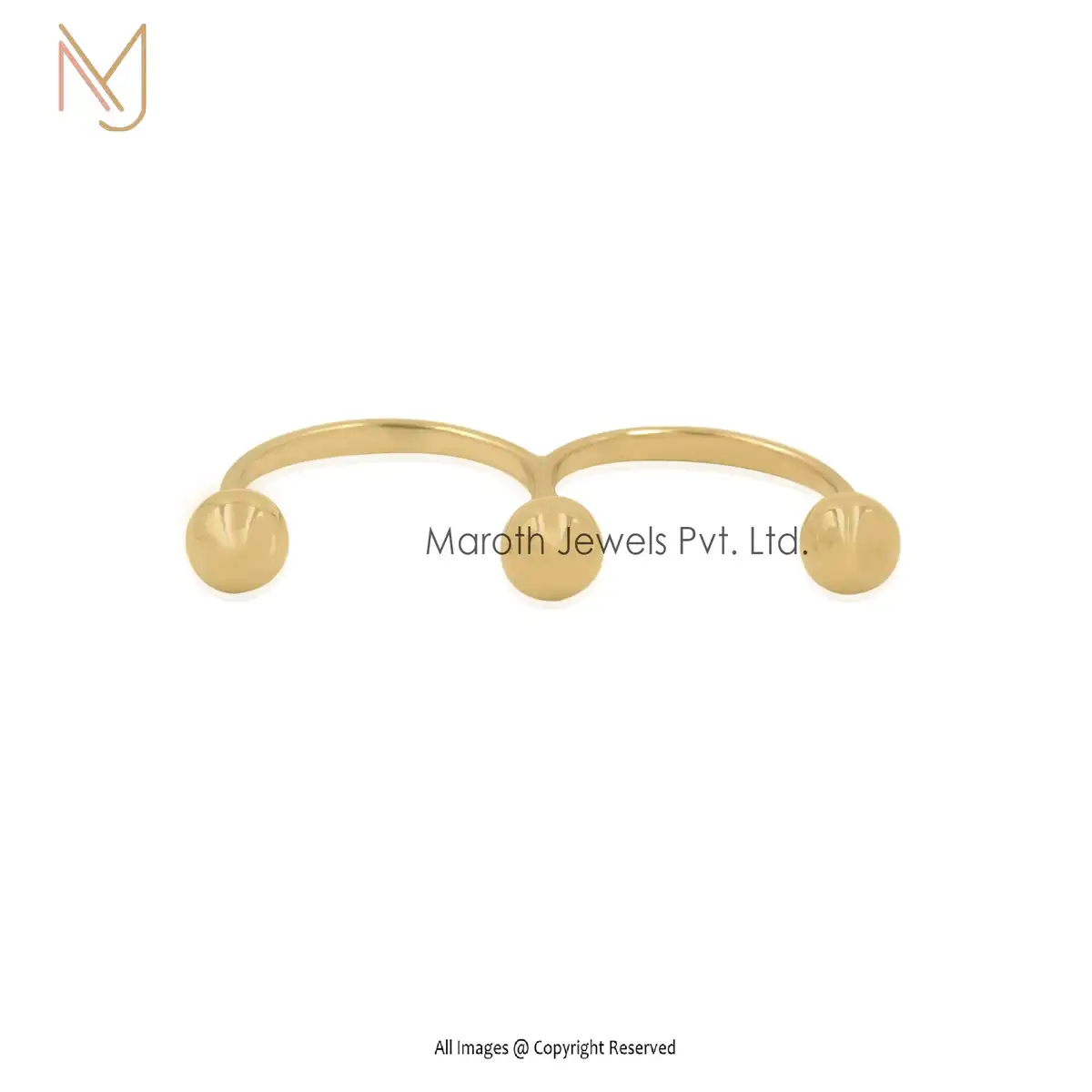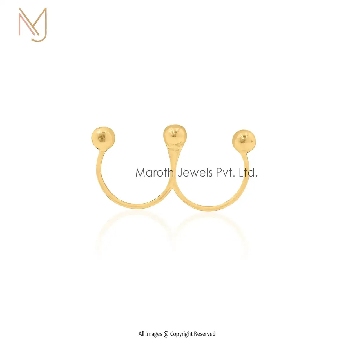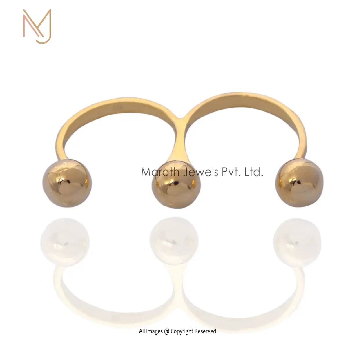 14K Yellow Gold Double Finger Ring Handmade Jewelry Manufacturer
