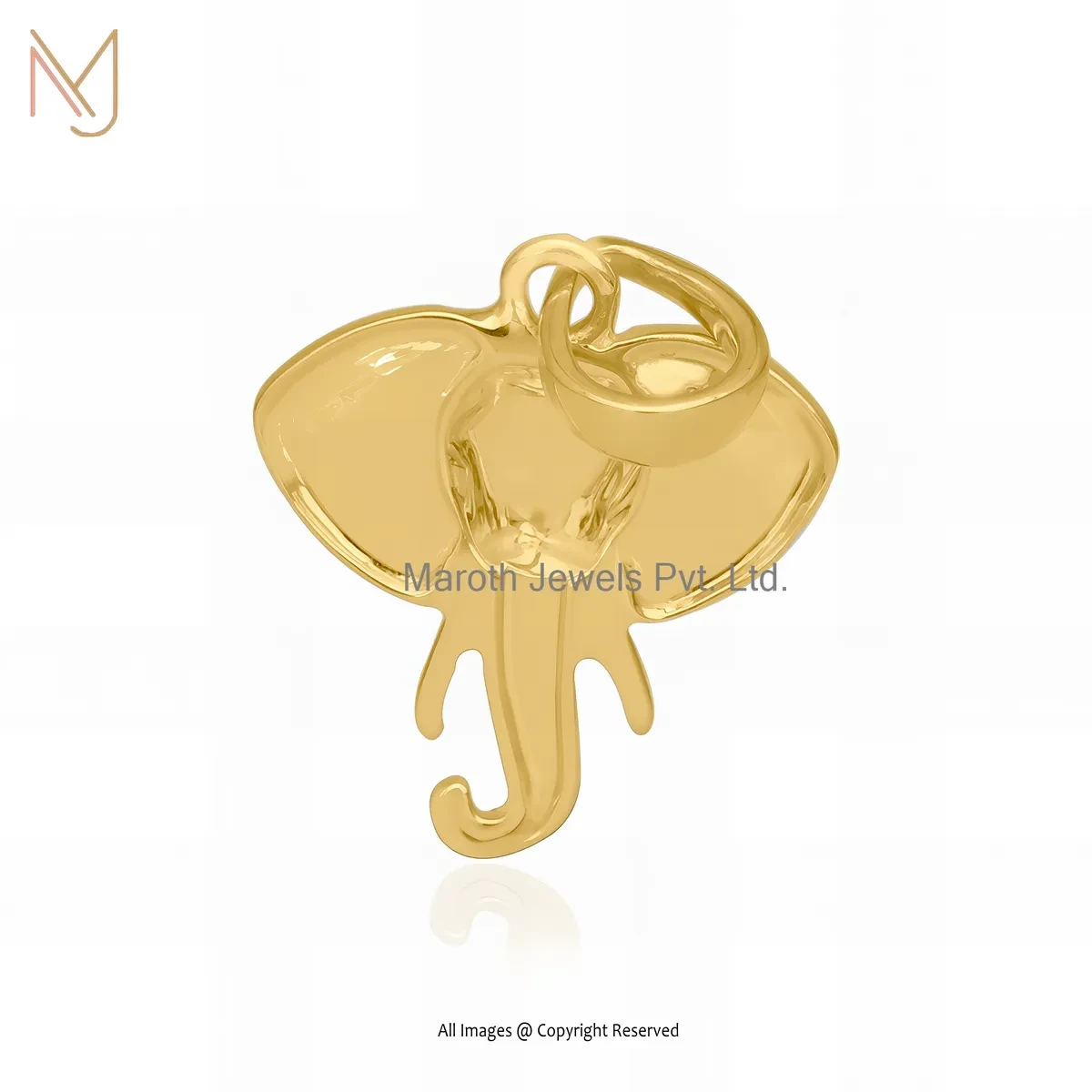 14K Yellow Gold Elephant Head Charm Pendant Manufacturer