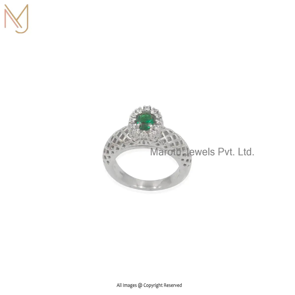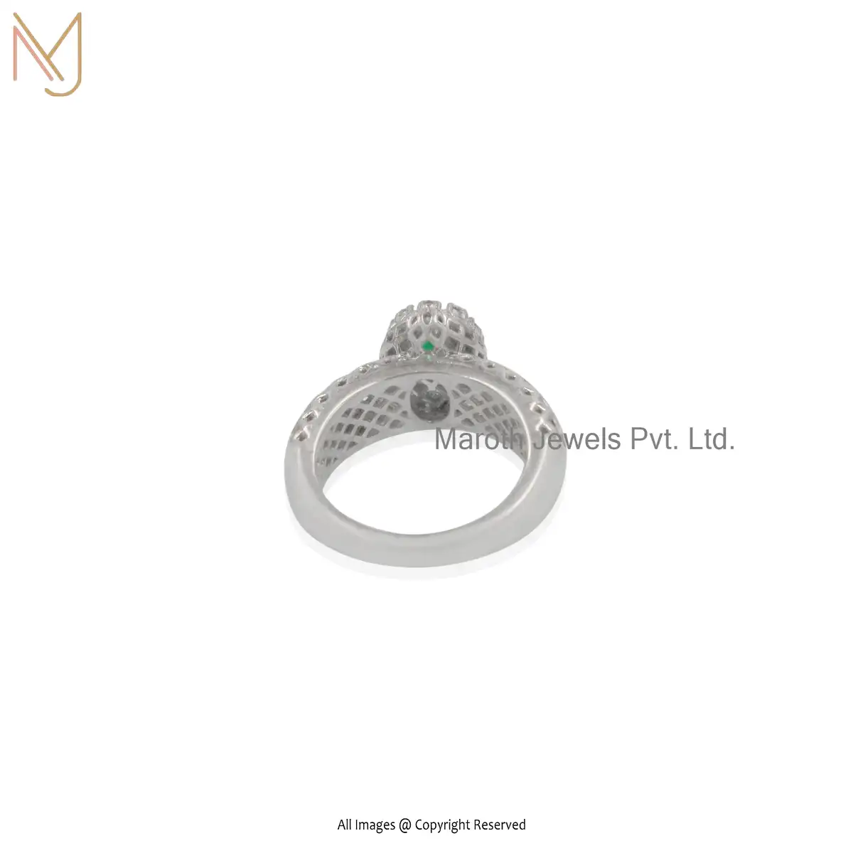 14K Yellow Gold Emerald Cubic Zirconia ring bezel Custom Jeweliry
