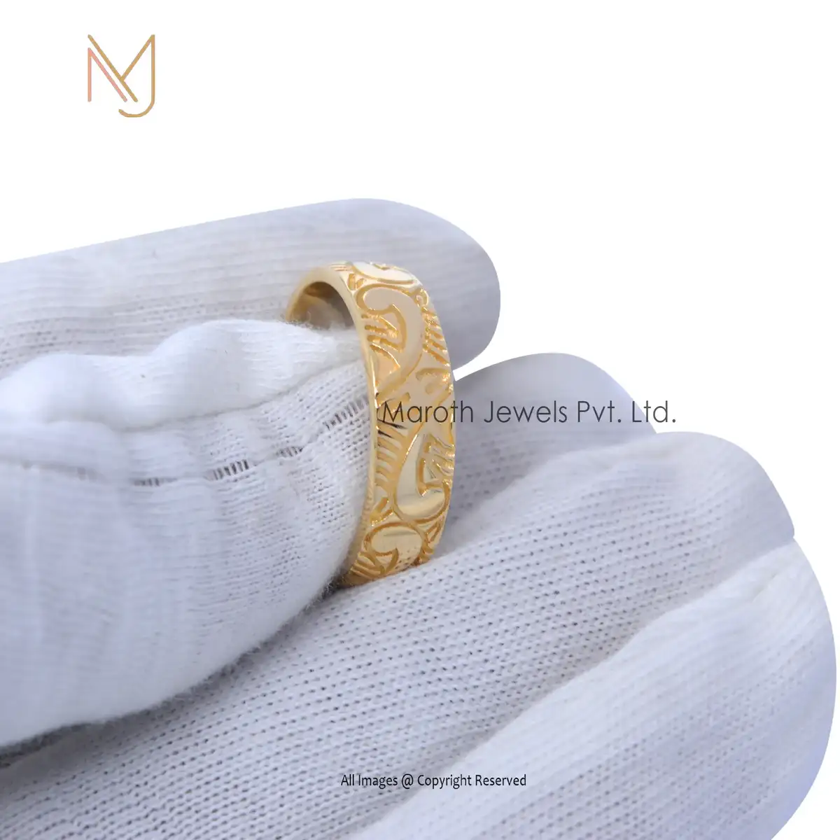 14K Yellow Gold Engraved Man's Ring Jewelry Manufacturer