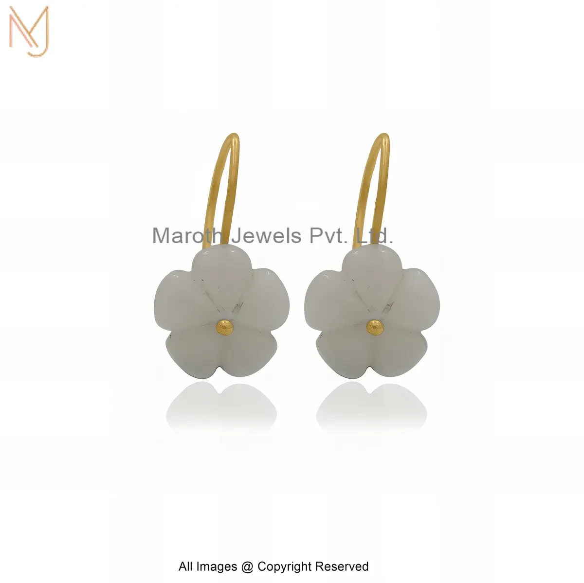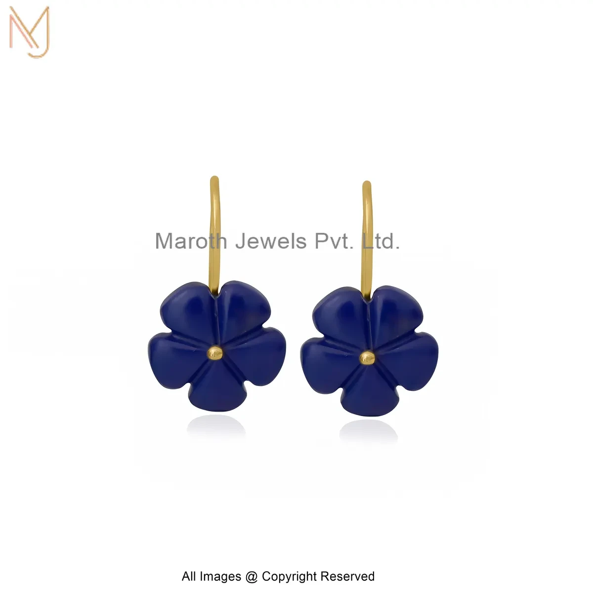 14K Yellow Gold Gemstone Flower Drop Earring Jewelry Supplier