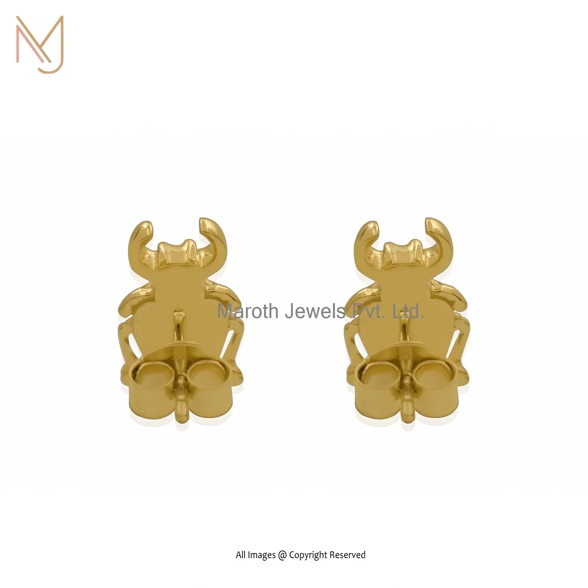 14K Yellow Gold Gemstone Scarab Stud Earring Jewelry Supplier