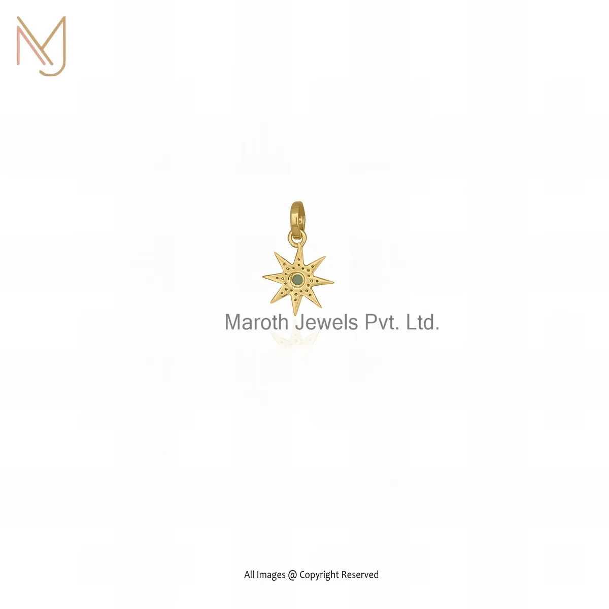 14K Yellow Gold Green Opal And Moissanite Star Pendant Custom Jewelry