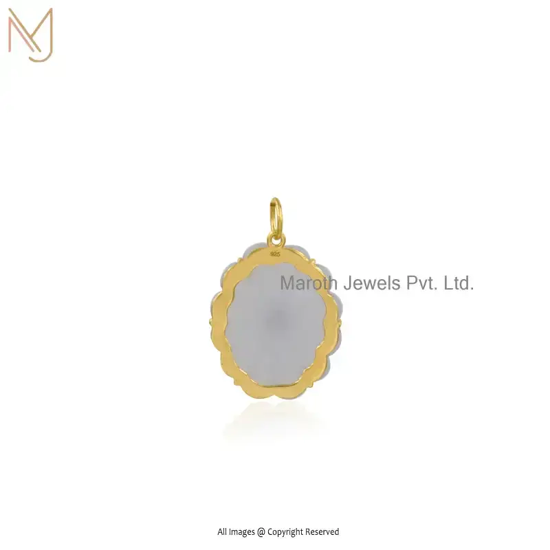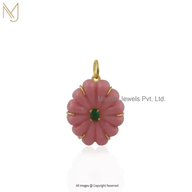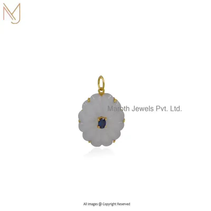 14K Yellow Gold Green Opal & Blue Sapphire Blossom Flower Gemstone Pendant Manufacturer