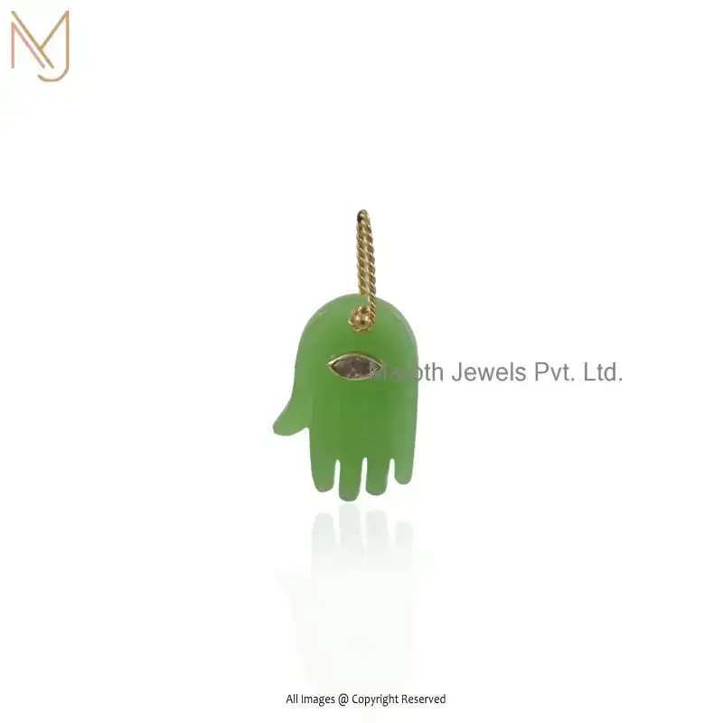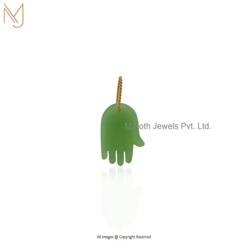 14K Yellow Gold Green Opal & Pink Sapphire Evil Eye Figa Pendant Custom Jewelry