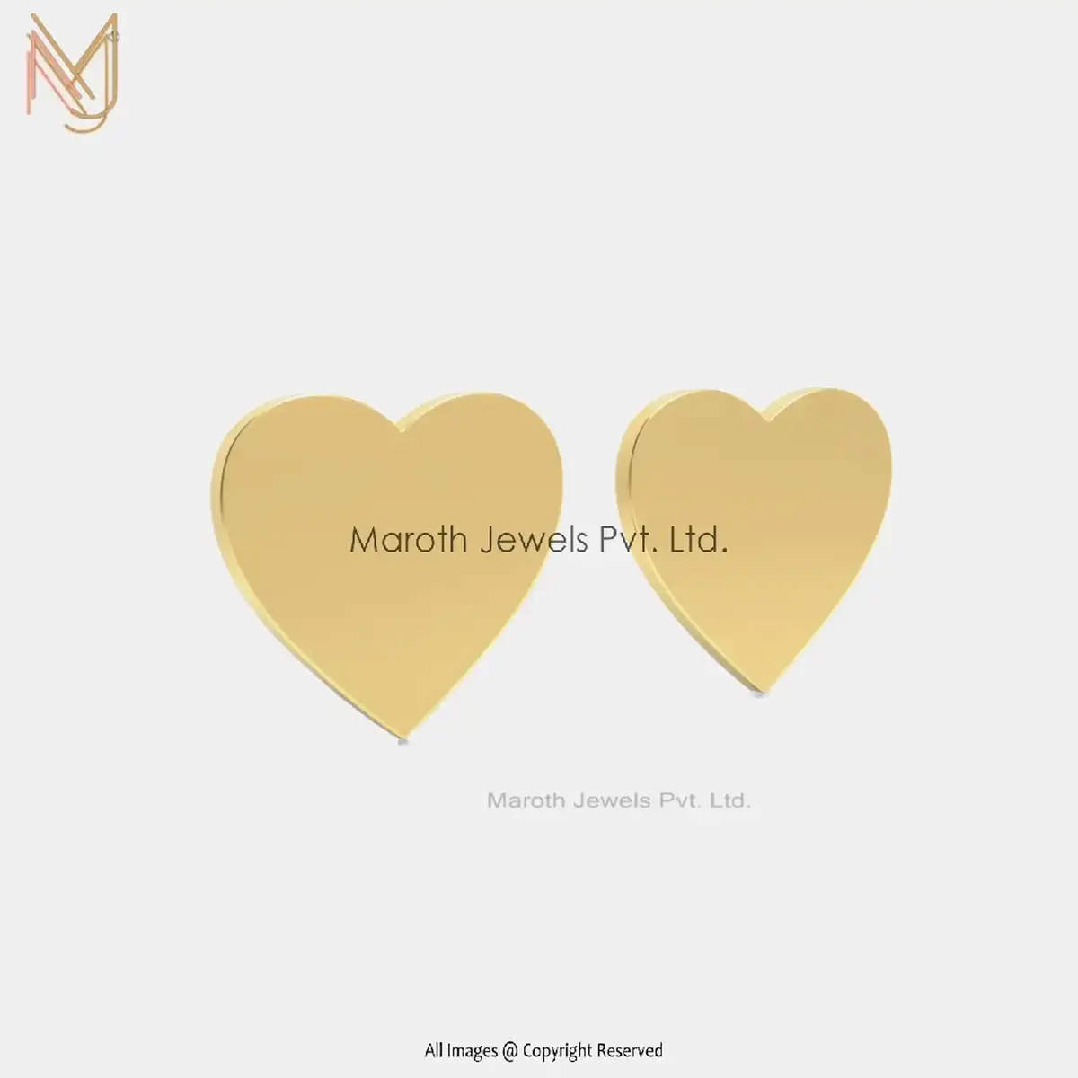14K Yellow Gold Heart Design Studs Earrings Handmade Jewelry Manufacturer