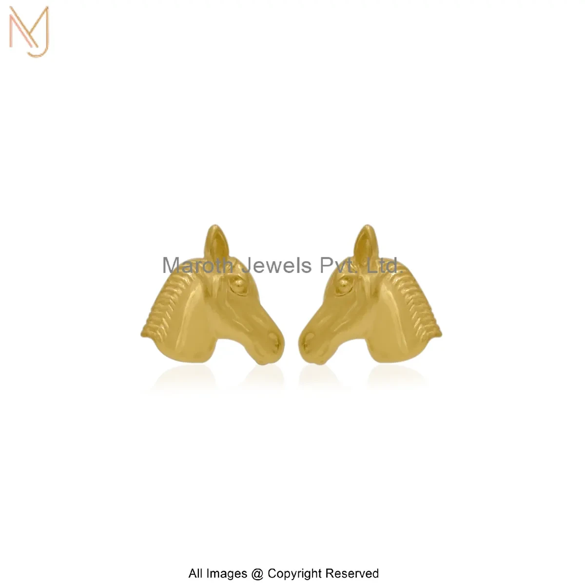 14K Yellow Gold Horse Head Stud Earring Jewelry Supplier