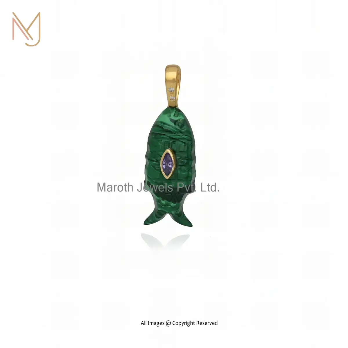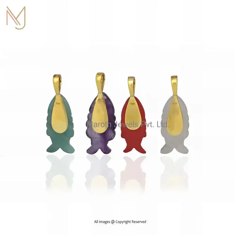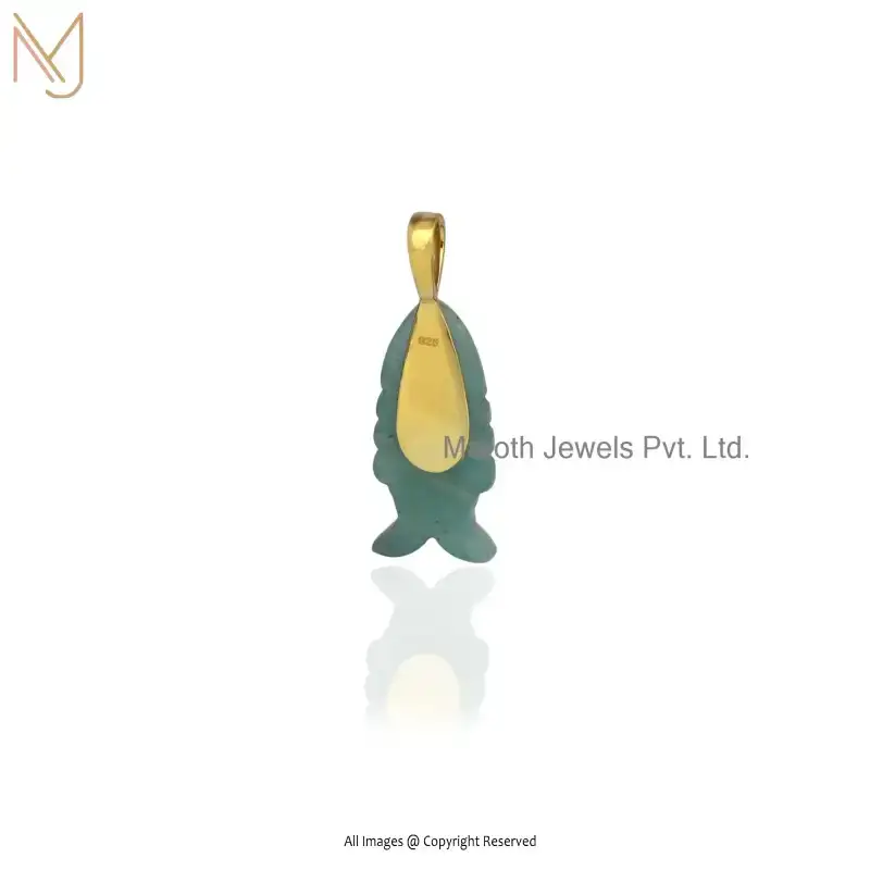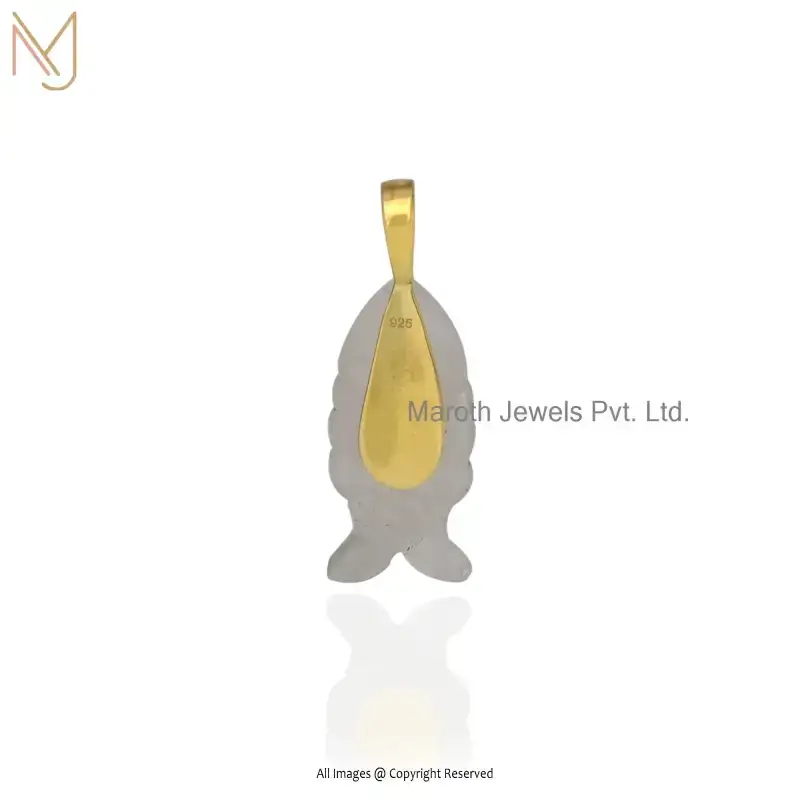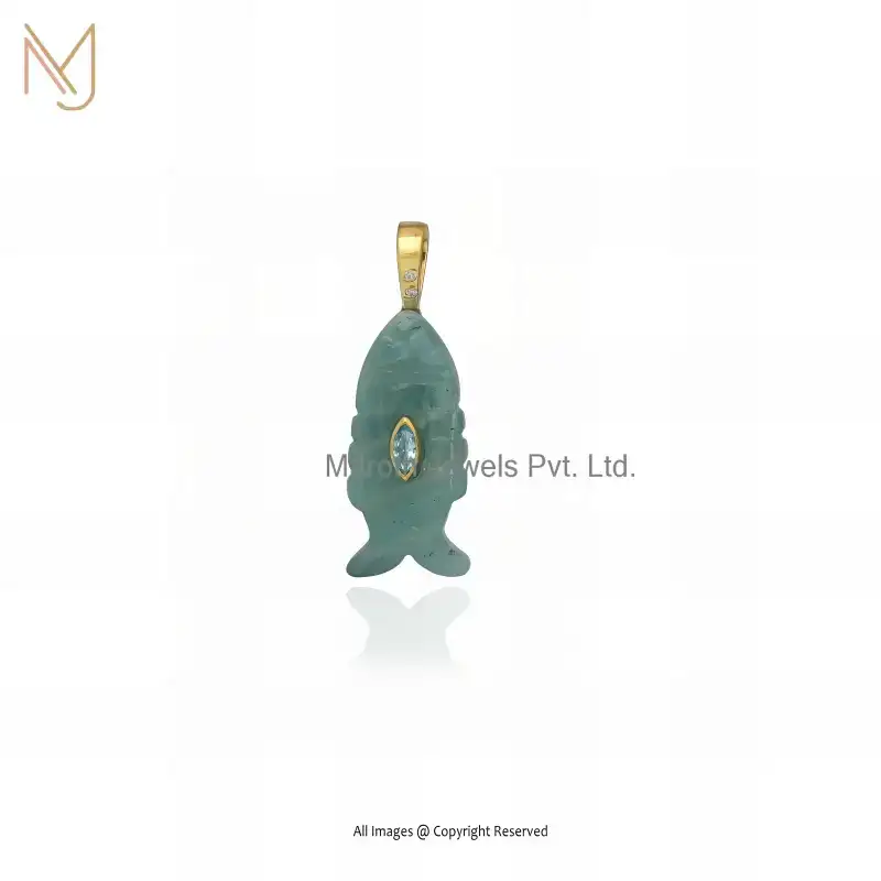 14K Yellow Gold Lapiz Lazuli And Yellow Tourmaline & White Cubic Zircon Fish Pendant USA
