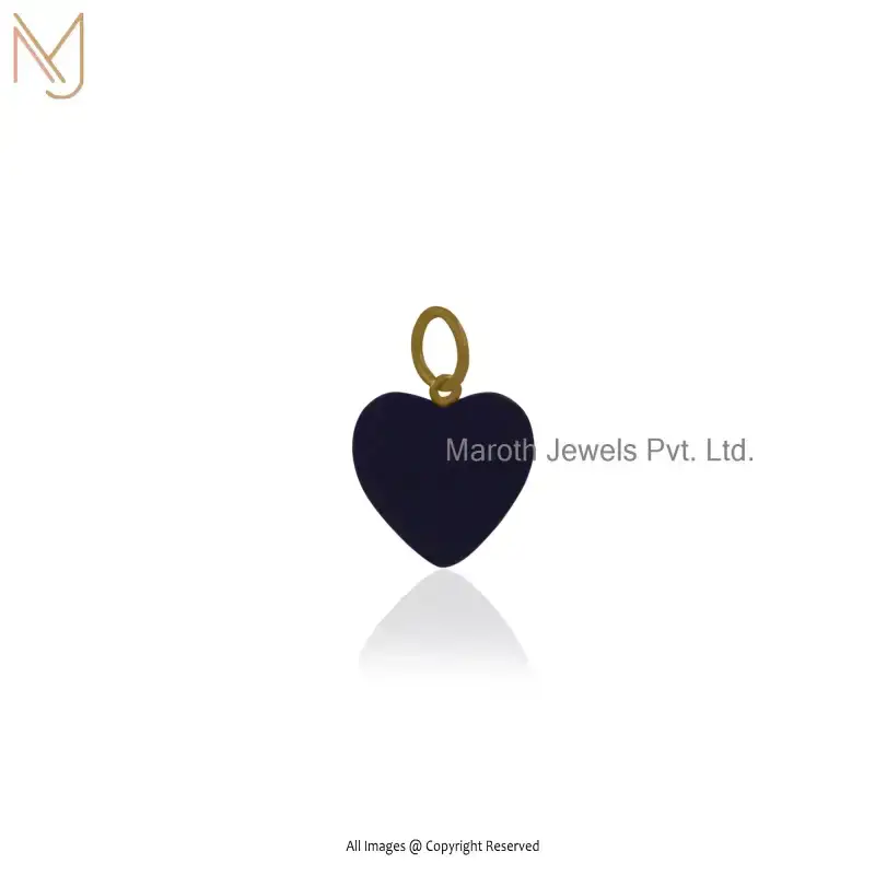 14K Yellow Gold Lapiz Lazuli & Cubic Zircon Heart Gemstone Pendant Manufacturer