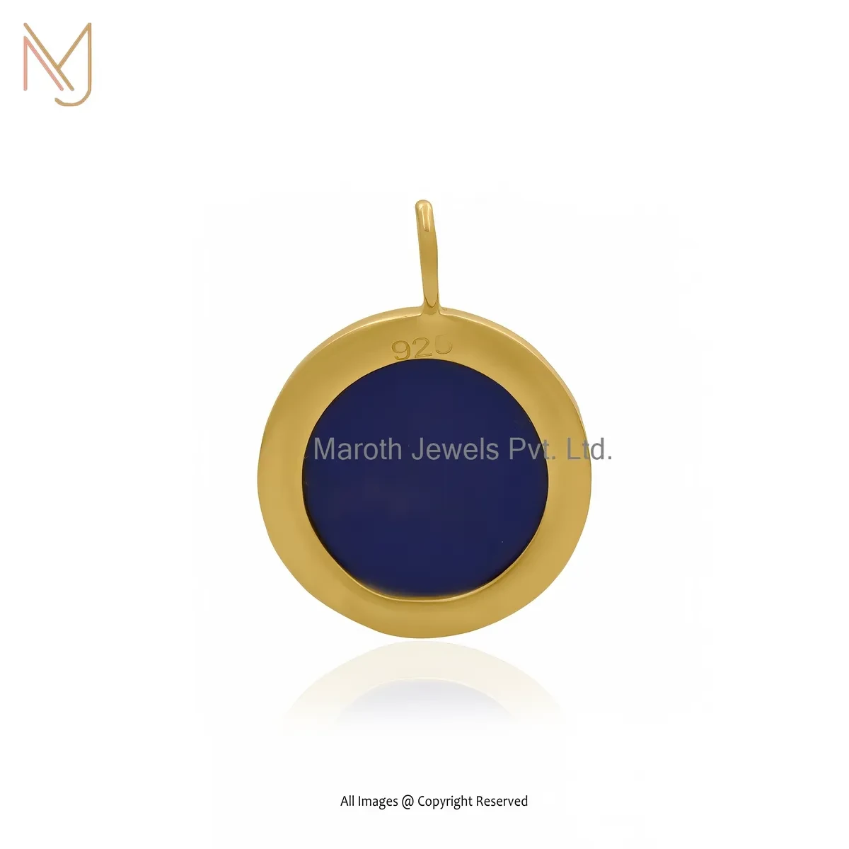 14K Yellow Gold Lapiz Lazuli Moon Pendant Custom Jewelry