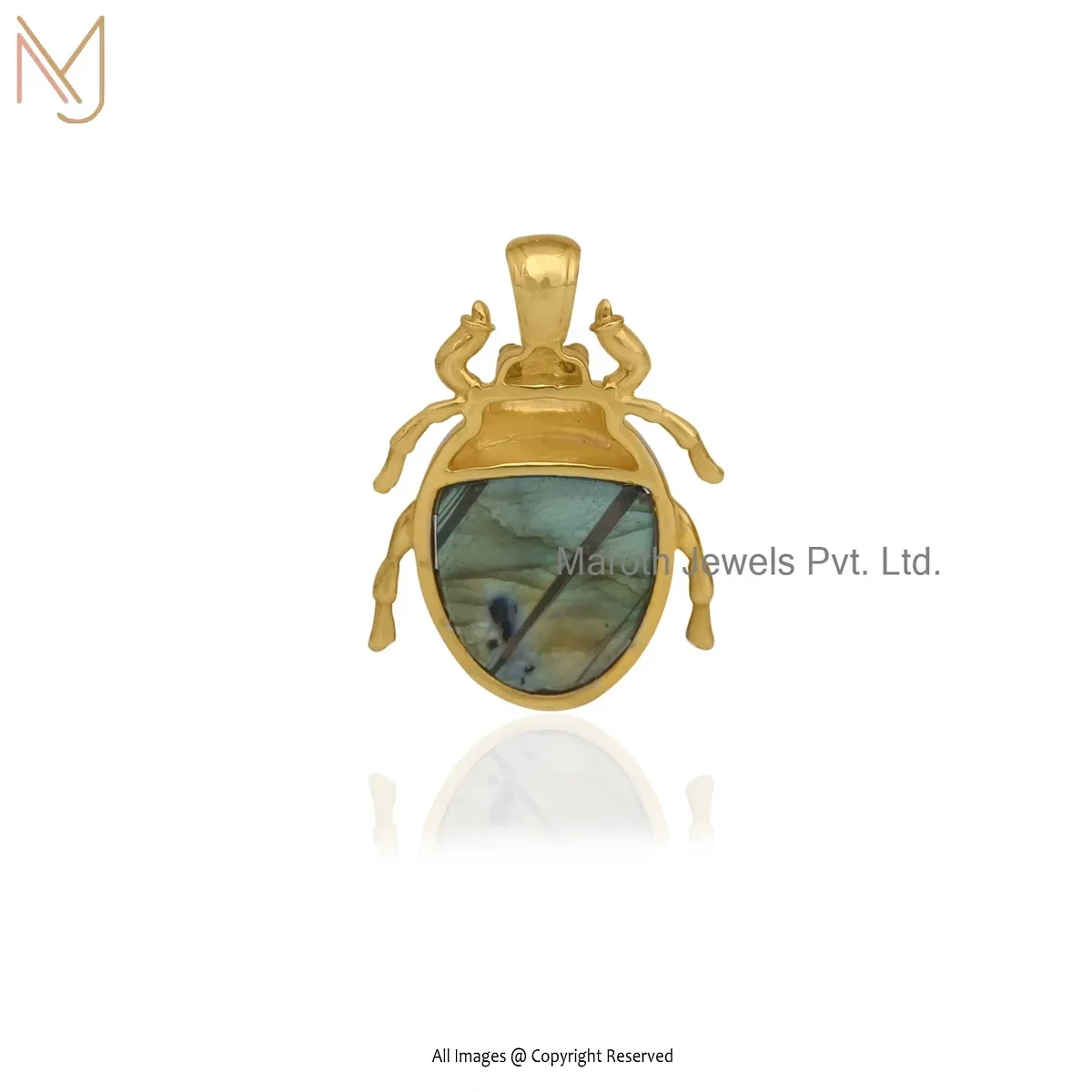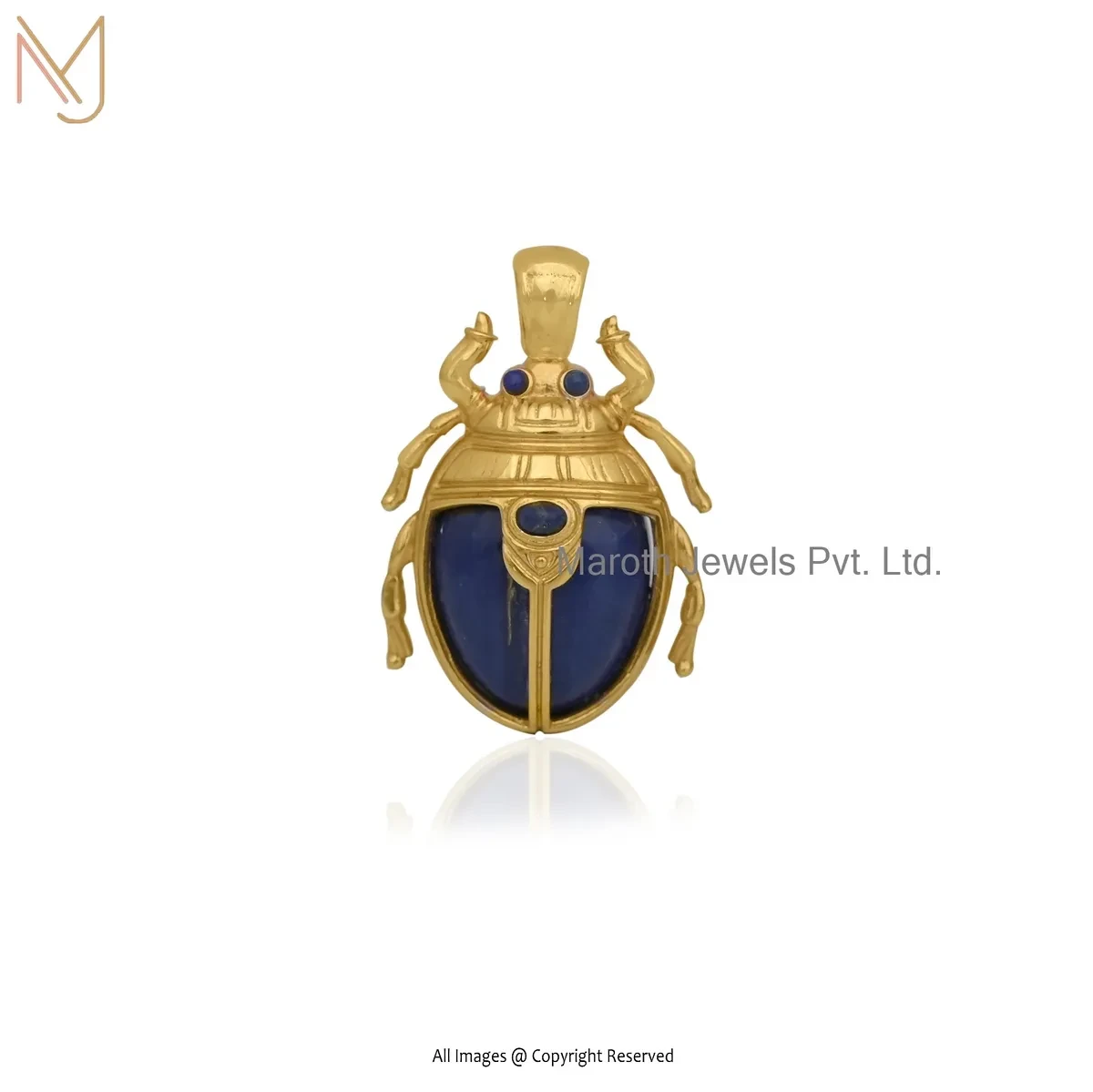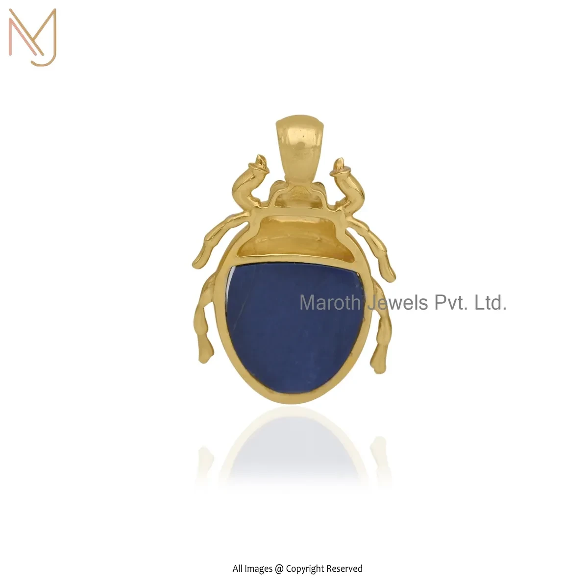 14K Yellow Gold Lapiz Lazuli Scarab Pendant Jewelry Supplier