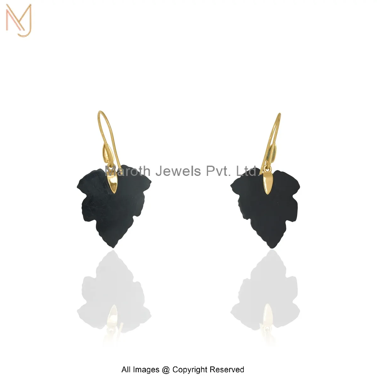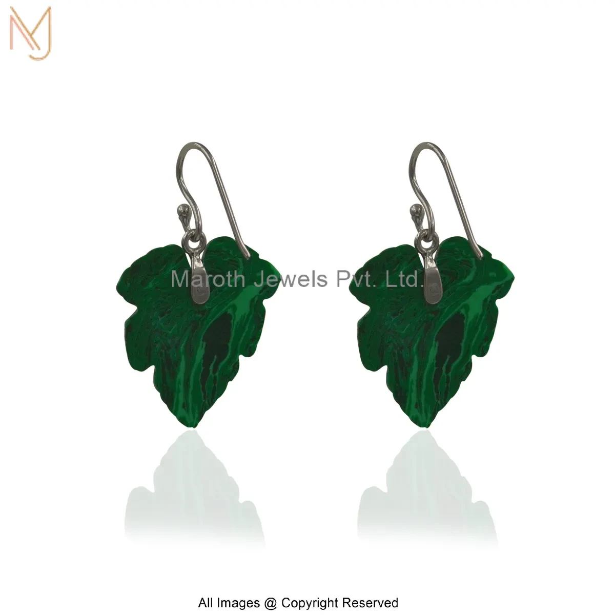 14K Yellow Gold Malachite Carved Leaf Drop Earring Jewelry Supplier