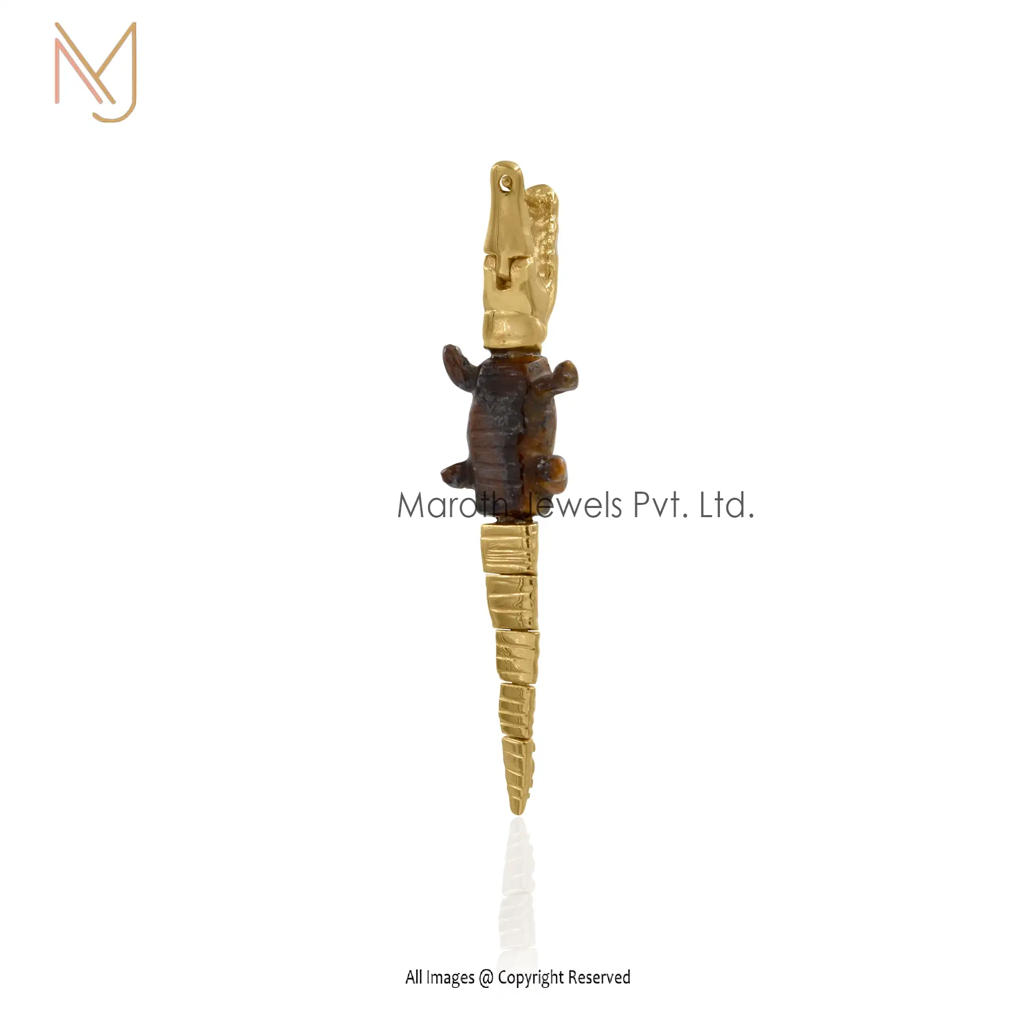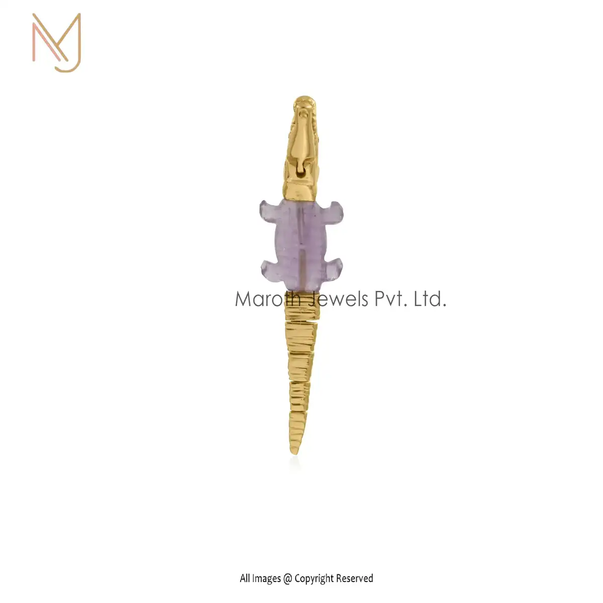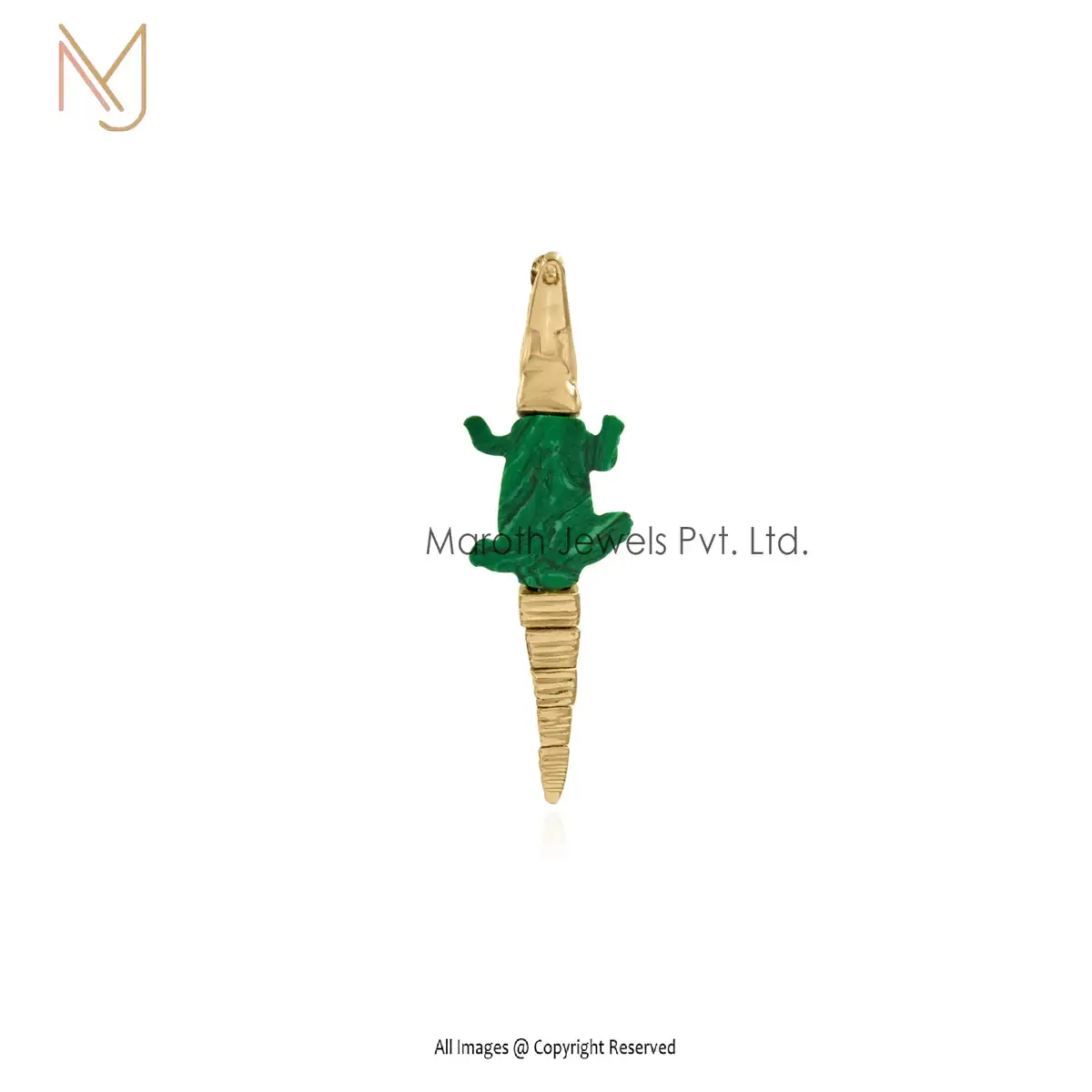 14K Yellow Gold Malachite Crocodile Pendants Jewelry Suppiler