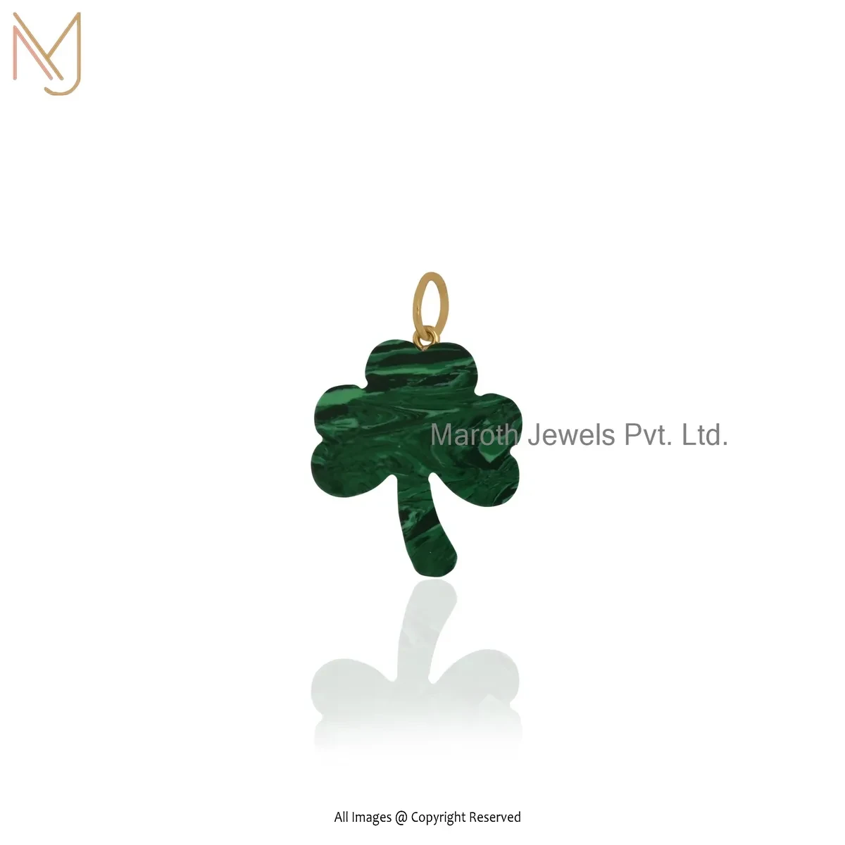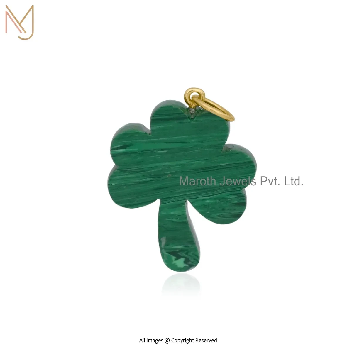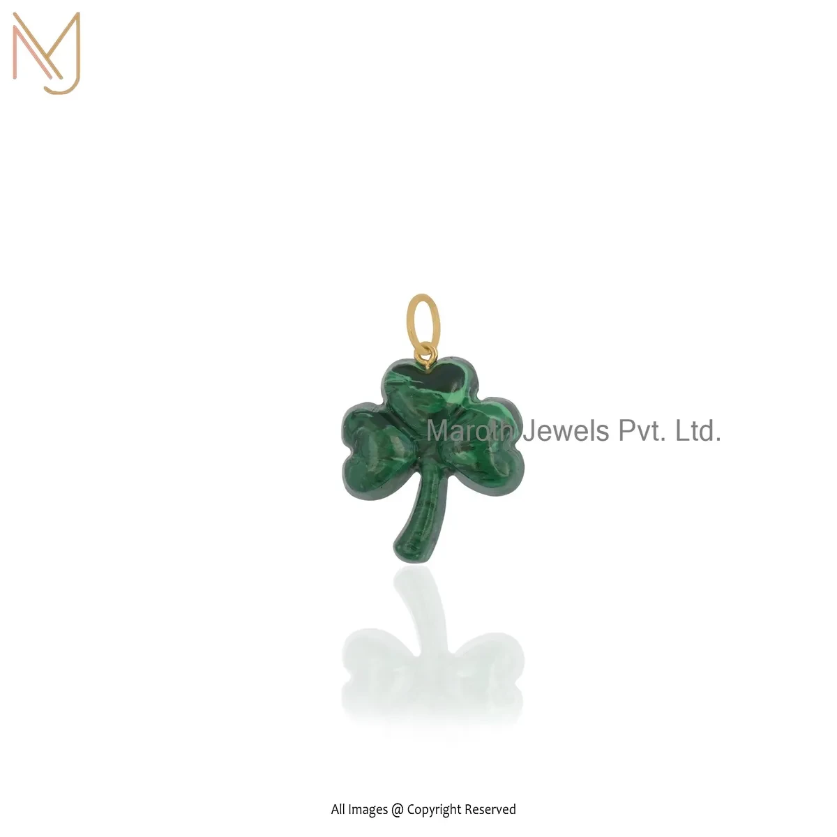 14K Yellow Gold Malachite Gemstone Leaf Clover Pendant Jewelry Supplier