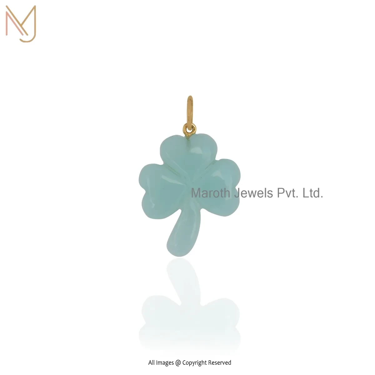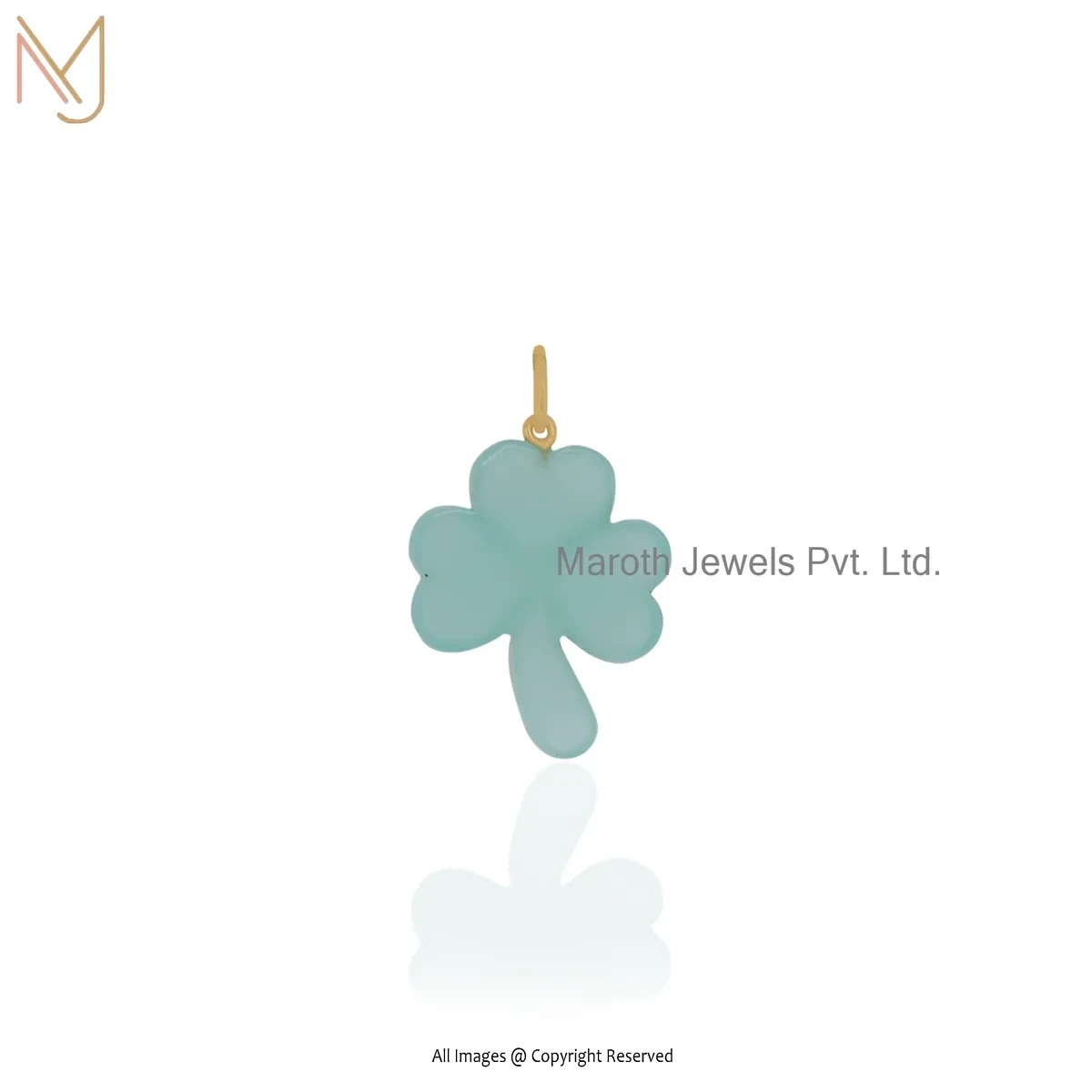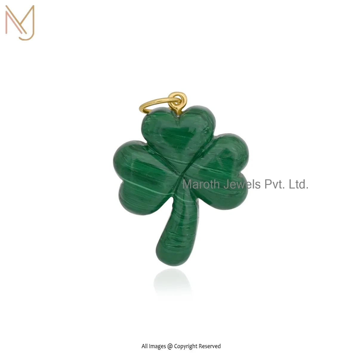 14K Yellow Gold Malachite Gemstone Leaf Clover Pendant Jewelry Supplier