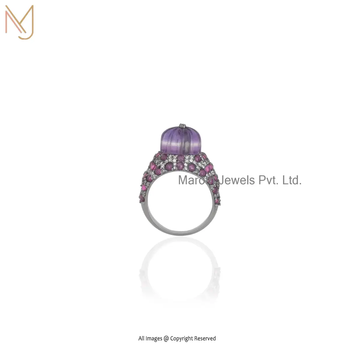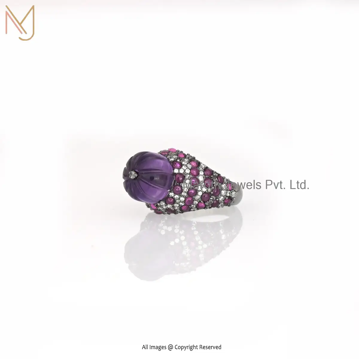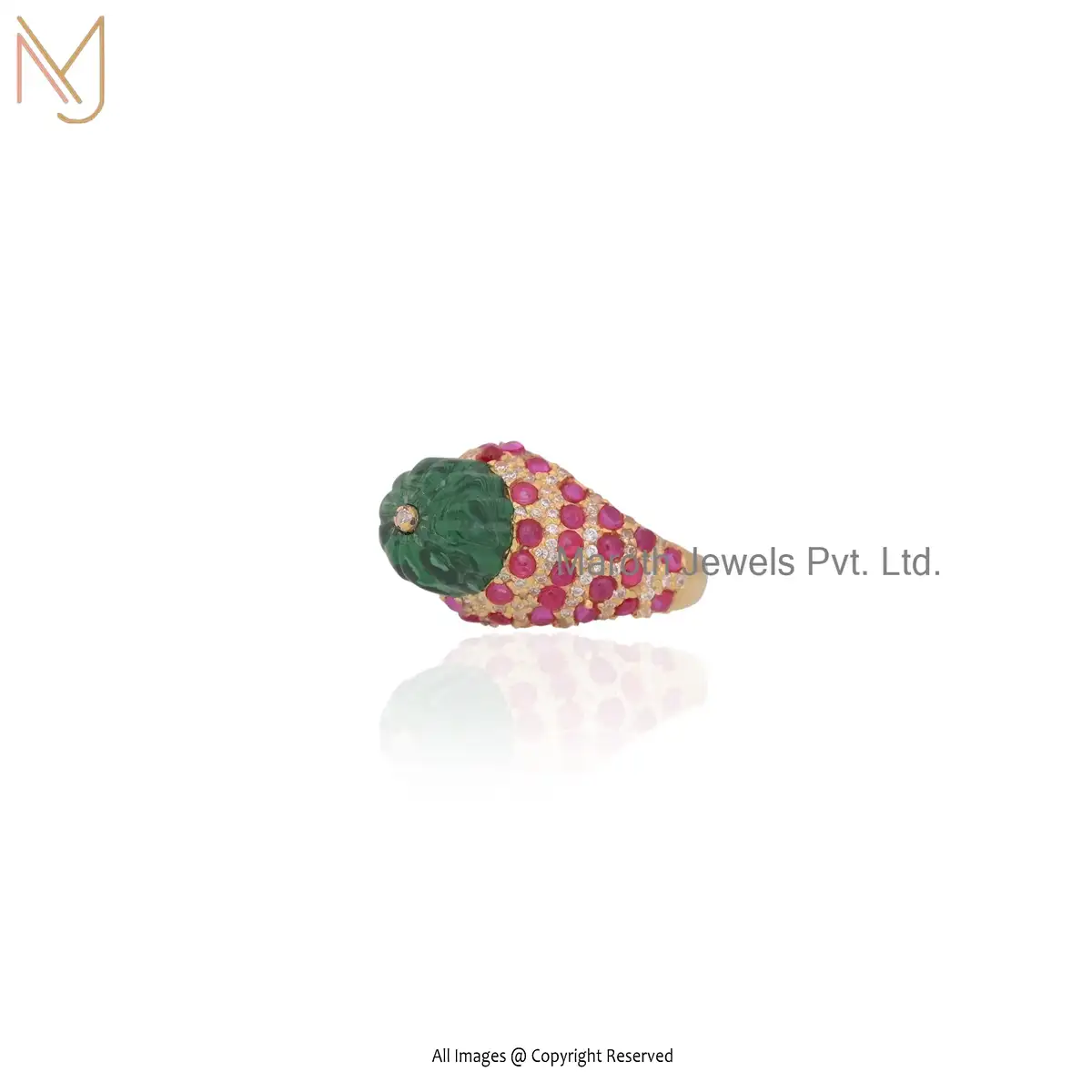 14K Yellow Gold Malachite Red White CZ Ring Custom Jewelry