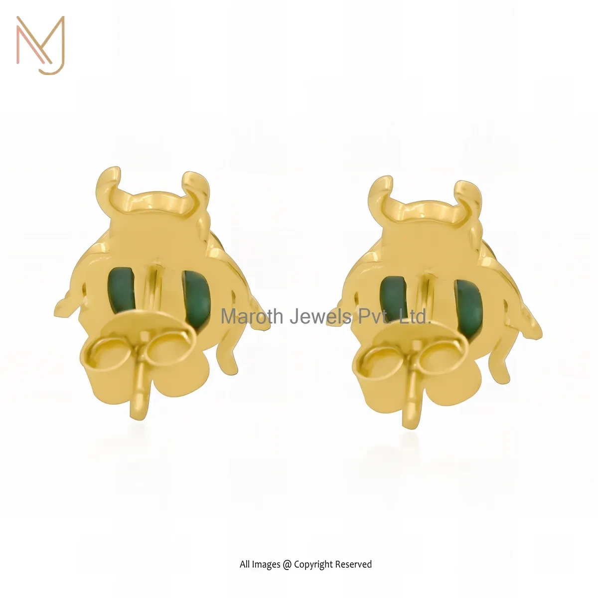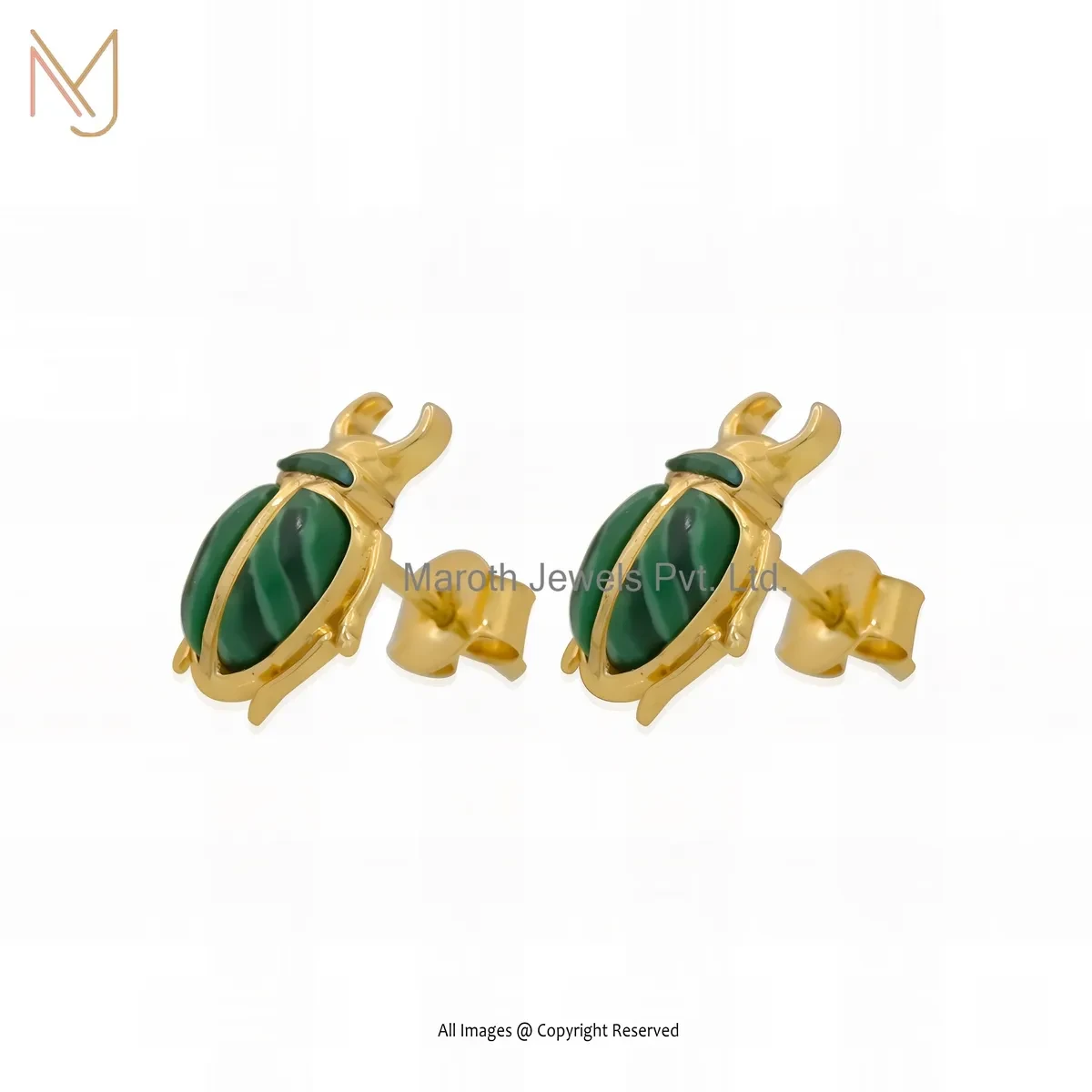 14K Yellow Gold Malachite Scarab Stud Earring Jewelry Supplier