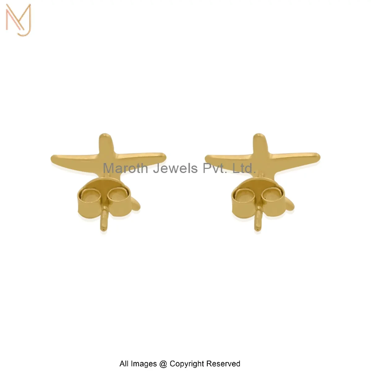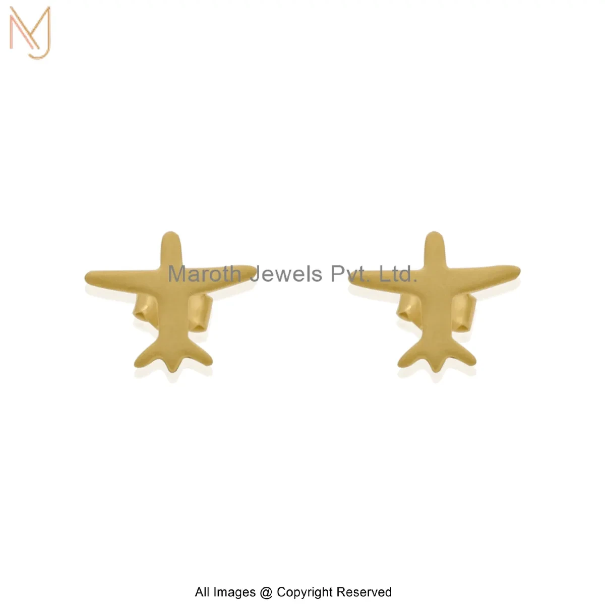14K Yellow Gold Minimal Gold Airplane Stud Earrings Manufacturer