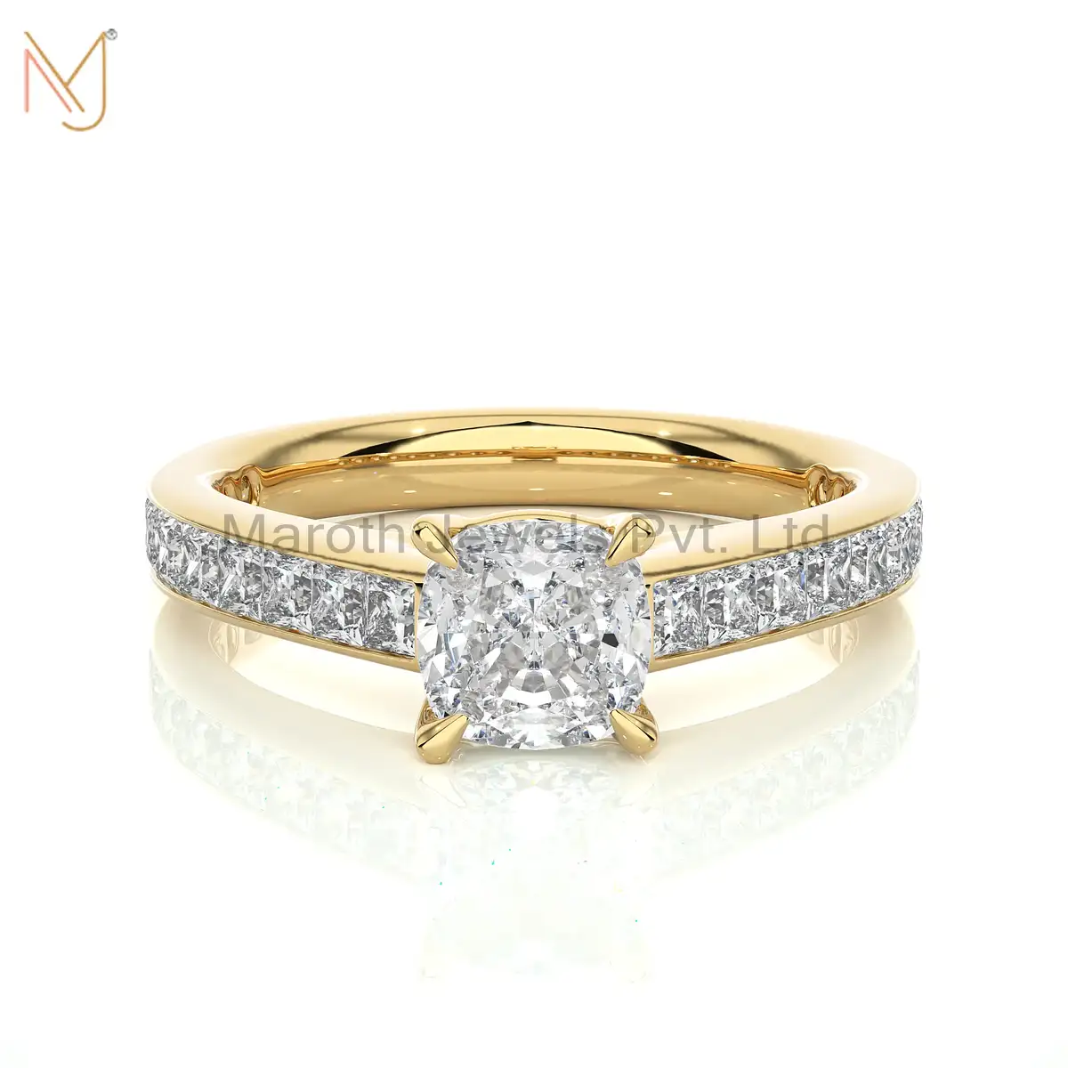 14K Yellow Gold Moissanite Diamond Cushion Princess Ring Manufacturer