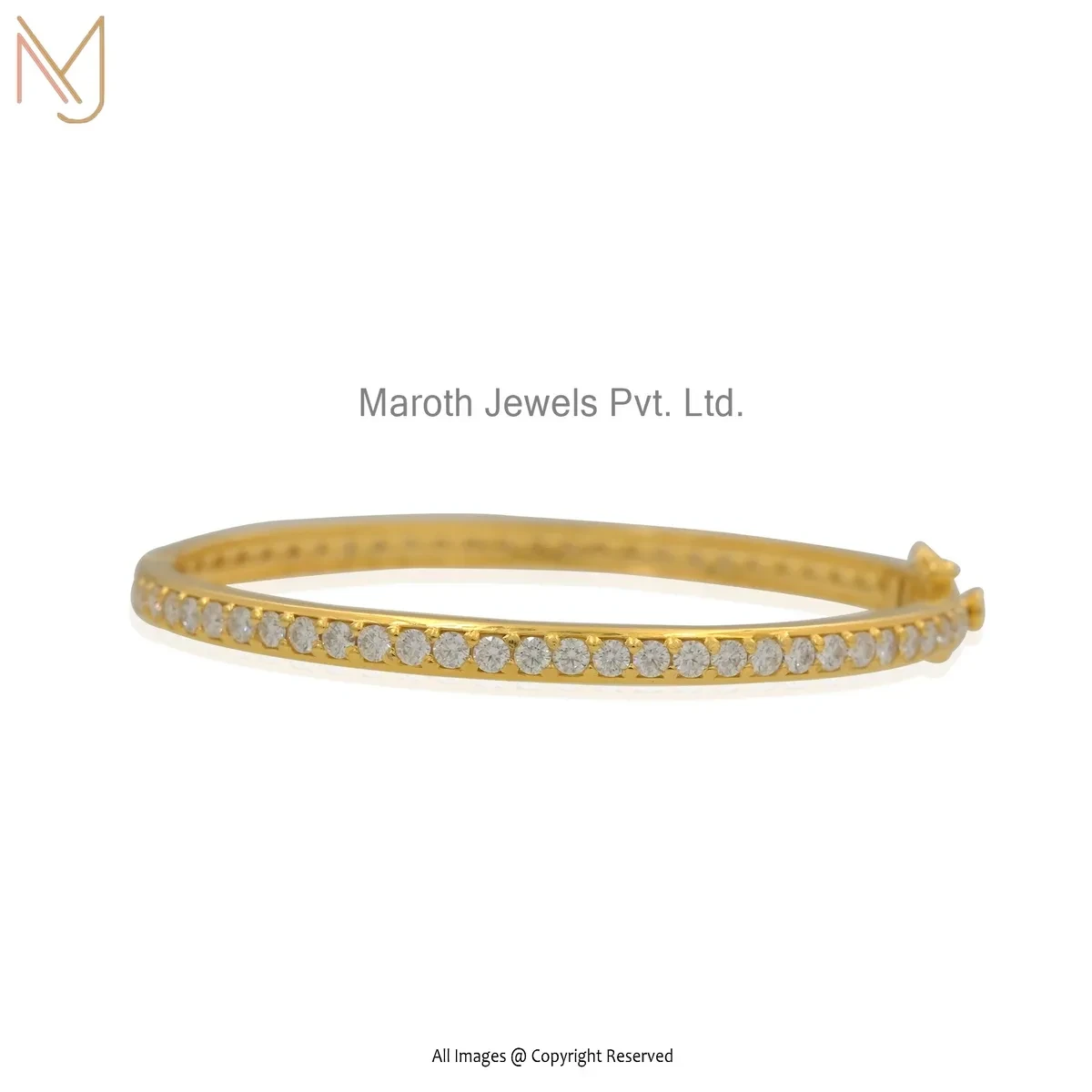 14K Yellow Gold Moissanite Diamond Hinged Bangle Custom Jewelry