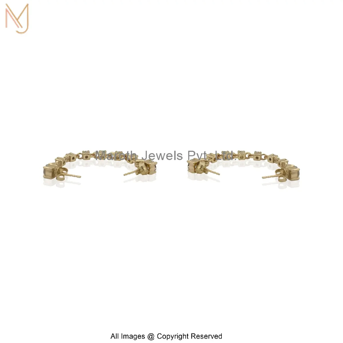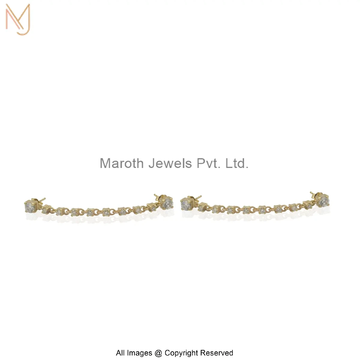 14K Yellow Gold Moissanite Double Pierced Chain Stud Earrings Custom Jewelry