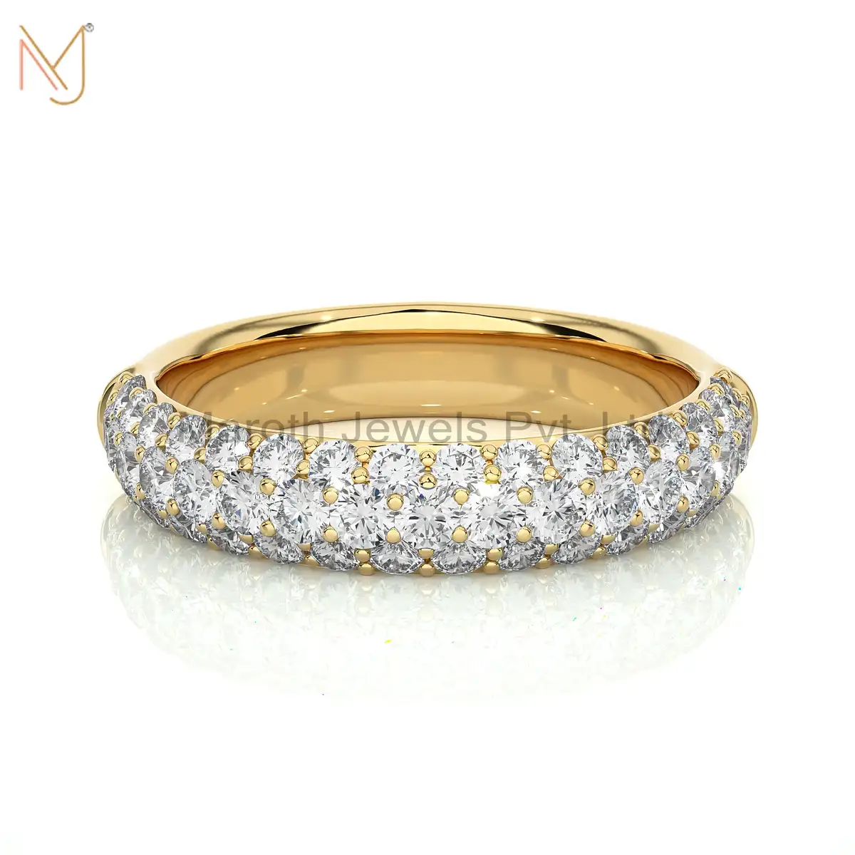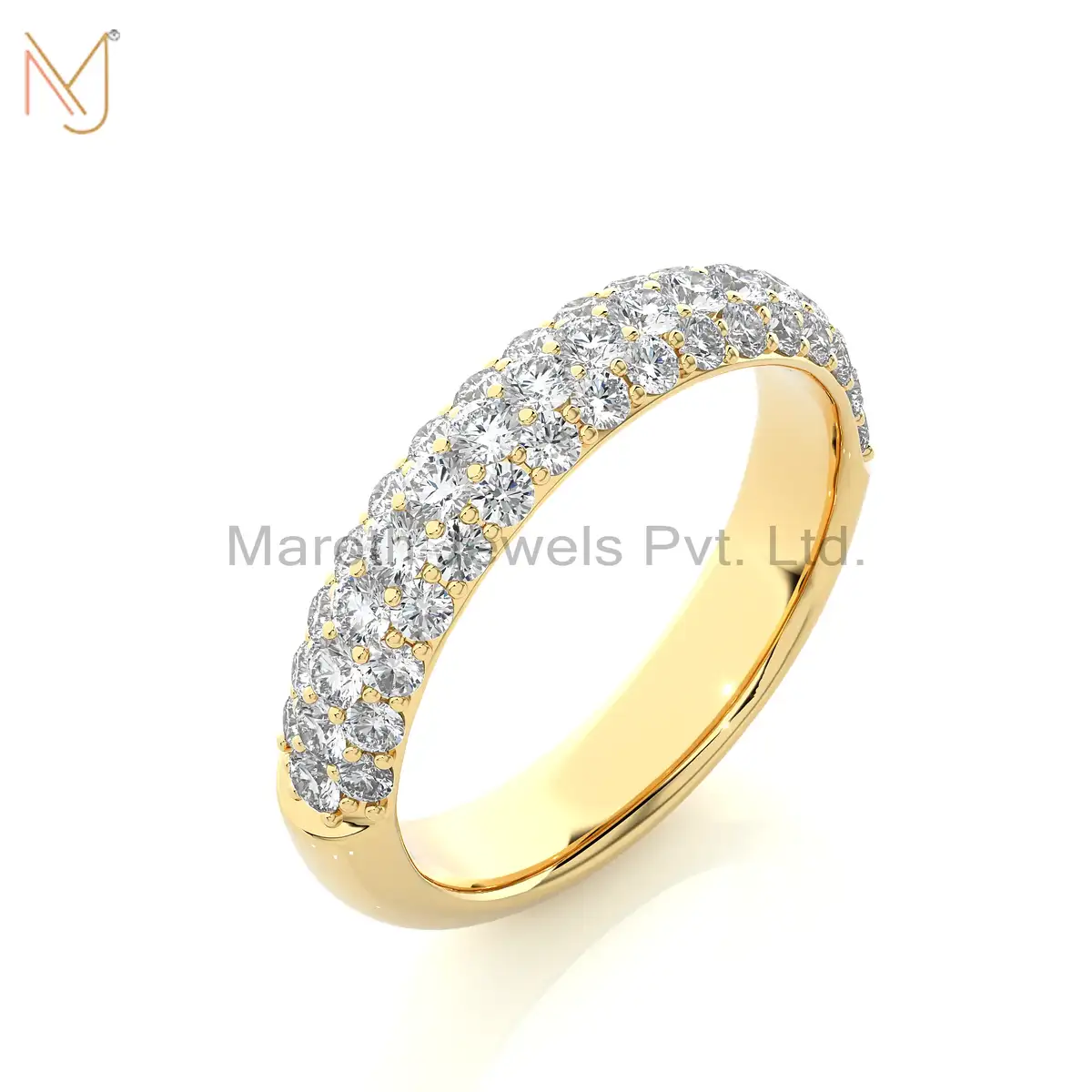 14K Yellow Gold Moissanite Pave Diamond Round Ring Manufacturer