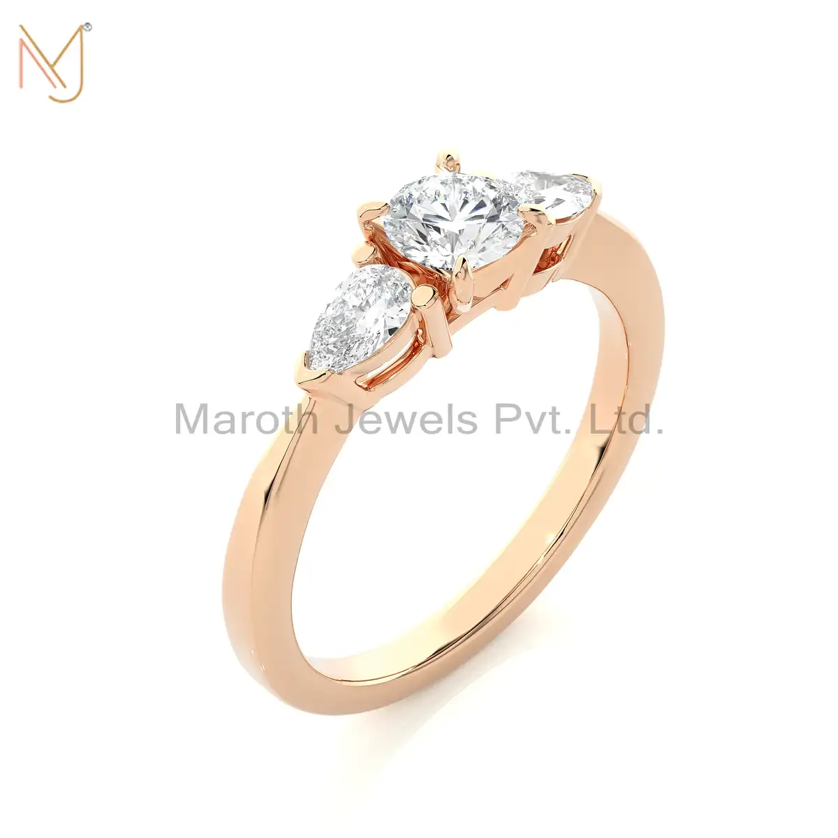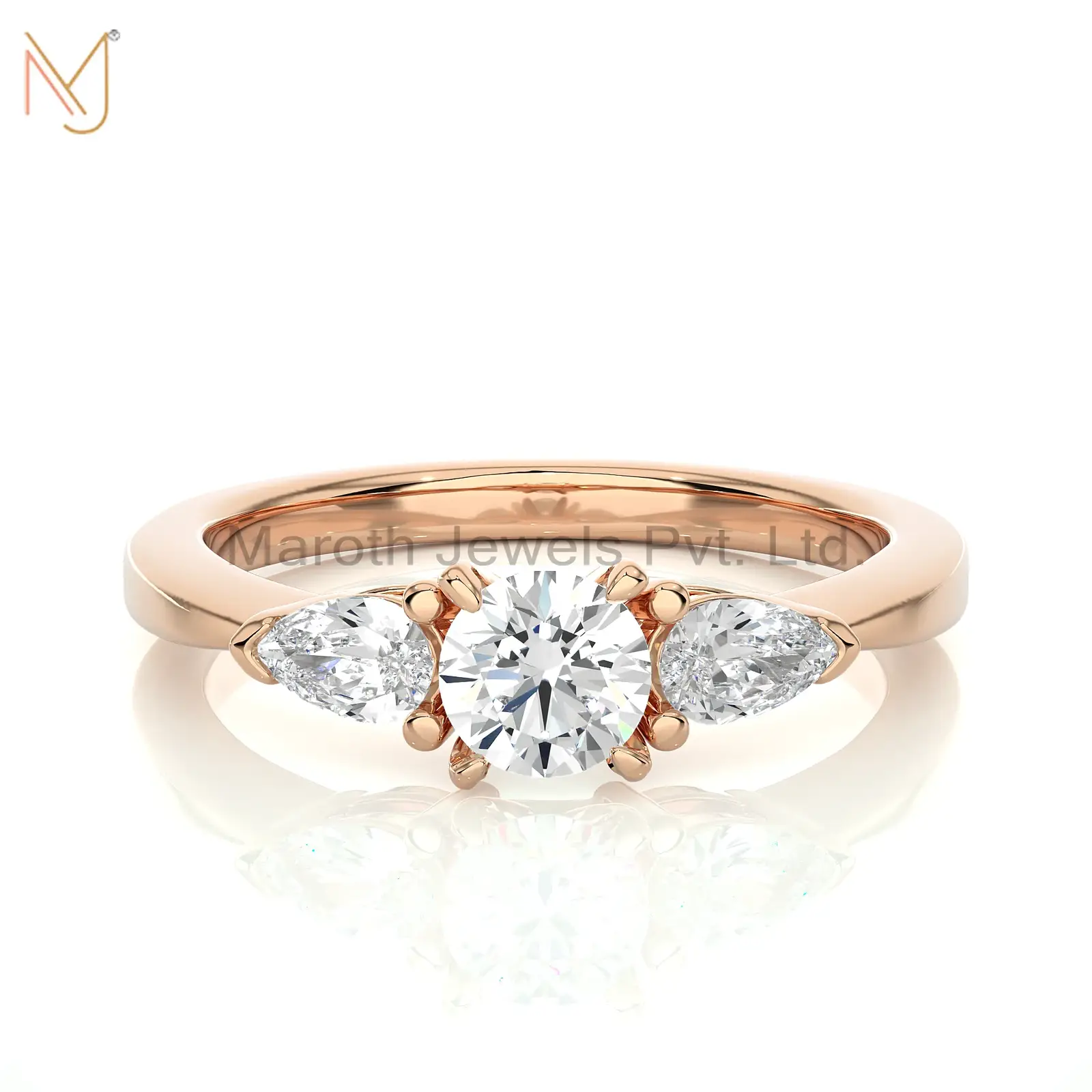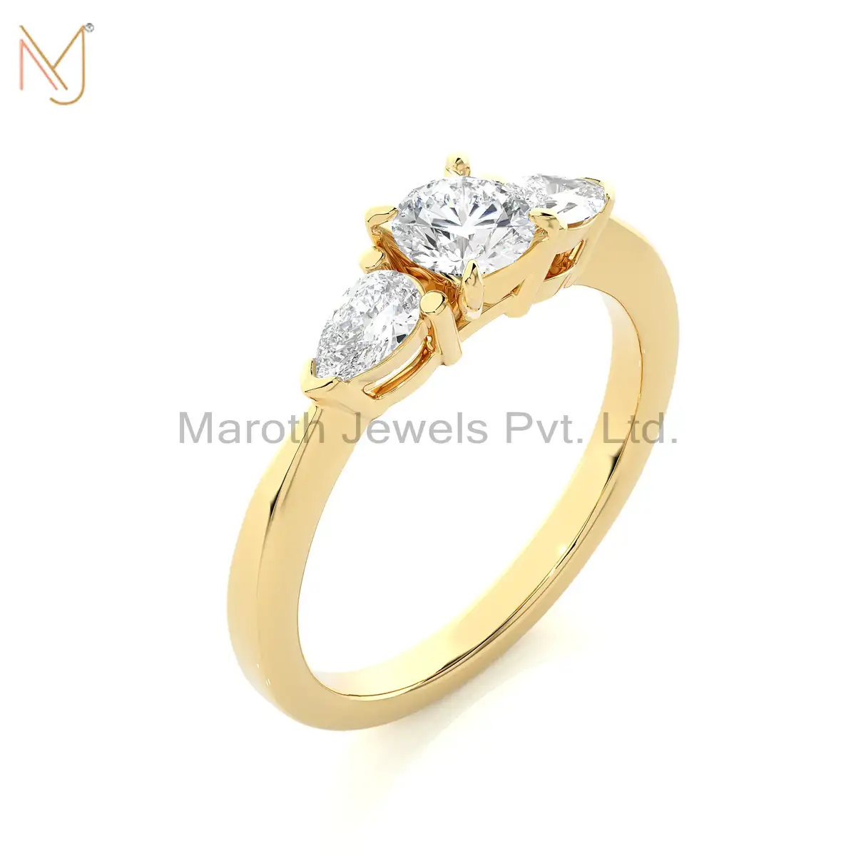 14K Yellow Gold Moissanite Pear Cut Diamond Round Ring Manufacturer