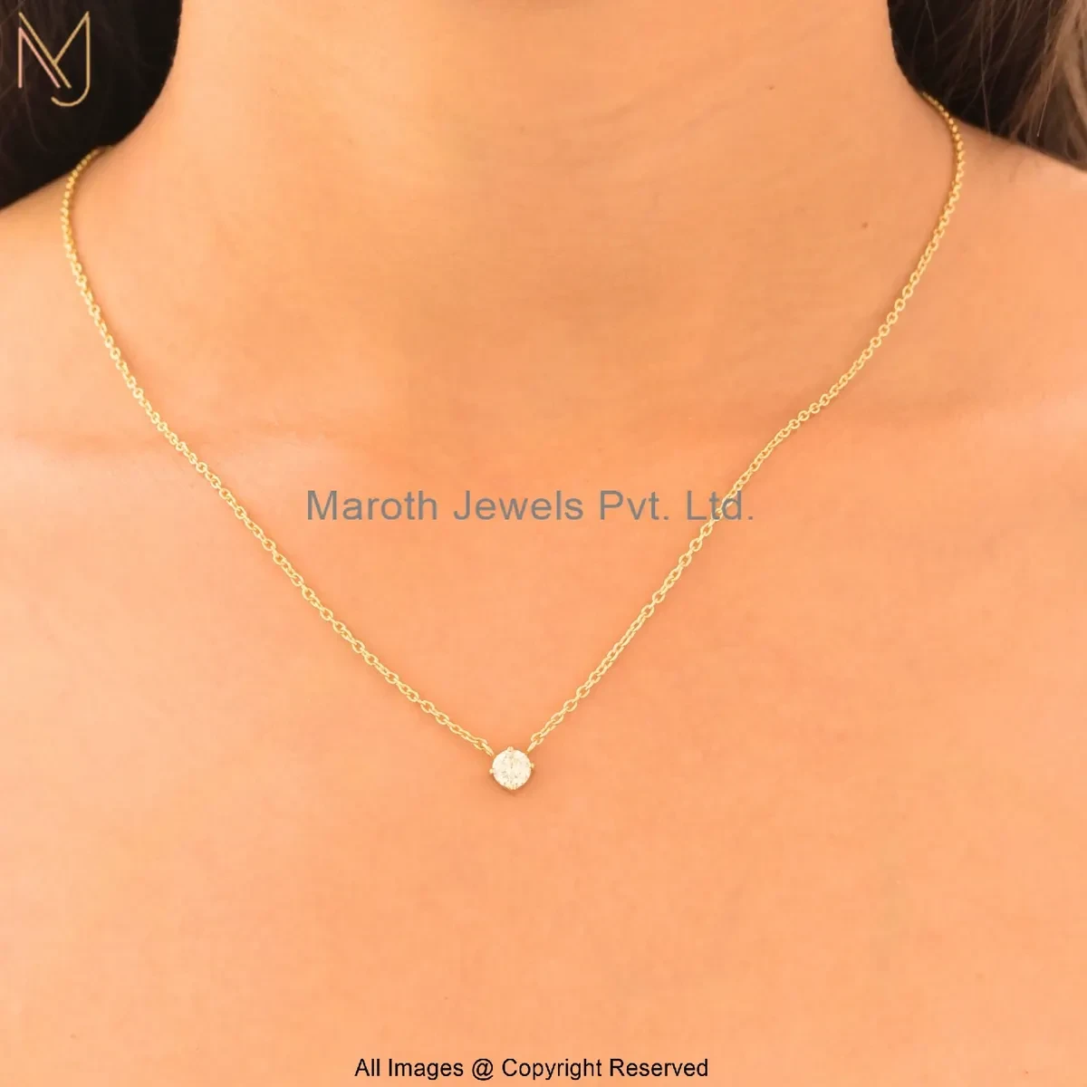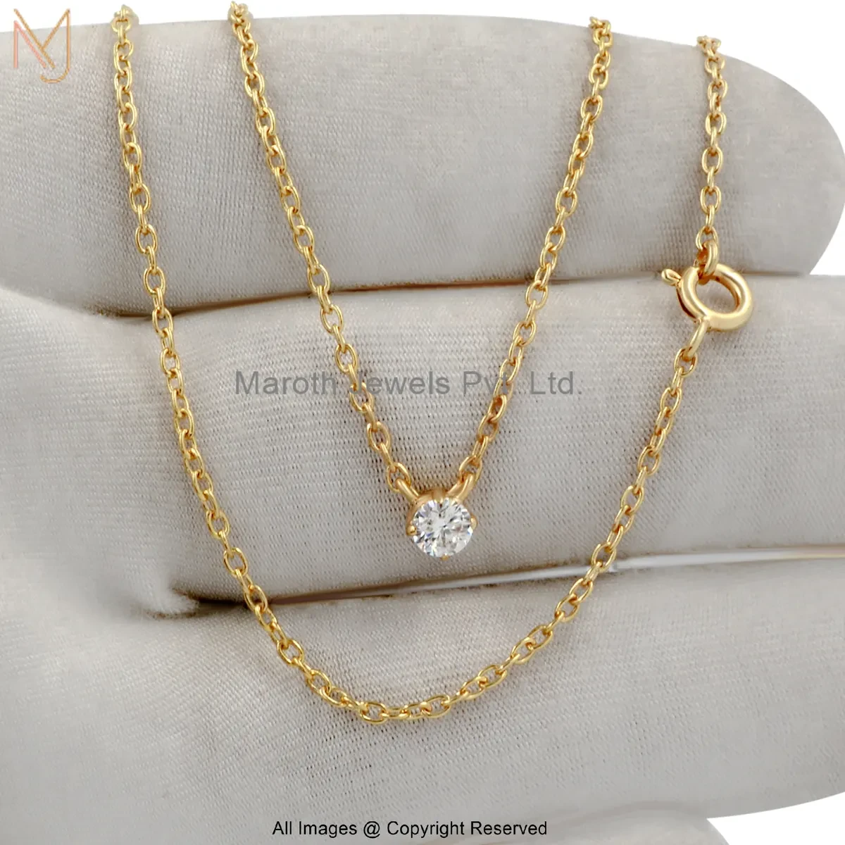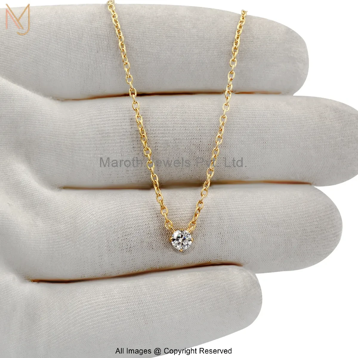 14K Yellow Gold Moissanite Round Bezel-Set Solitaire Pendant Necklace Jewelry Supplier