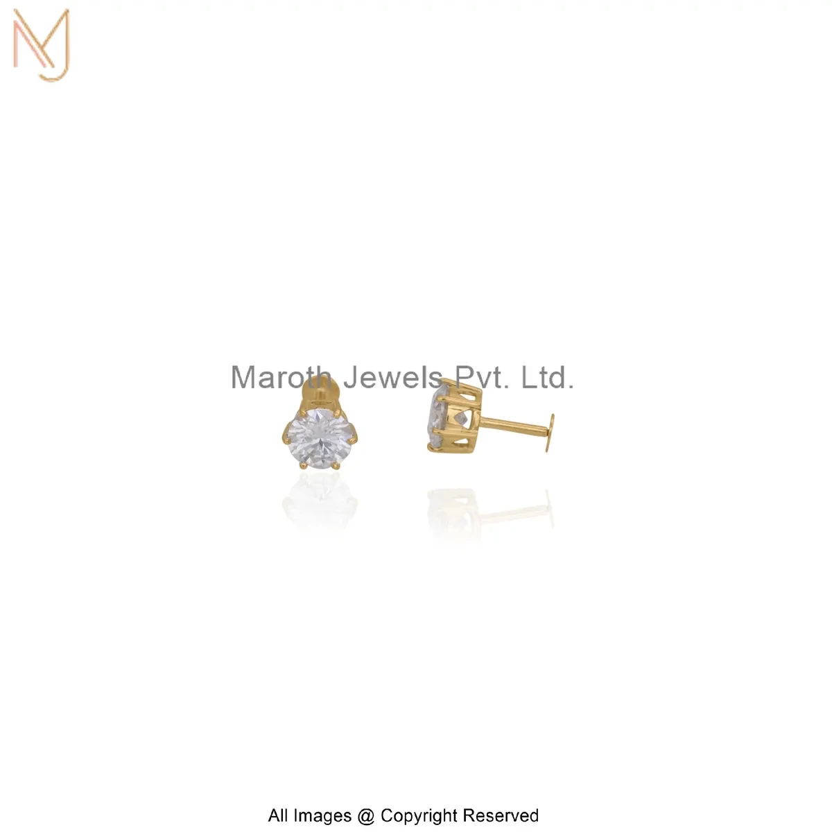 14K Yellow Gold Moissanite Round-Cut Diamond Stud Earring Manufacturer