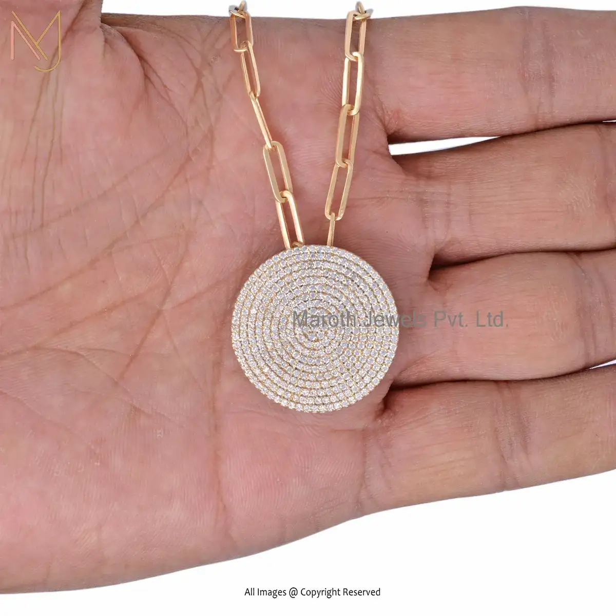14K Yellow Gold Moissanite Round Disc Charm Pendant Jewelry Supplier